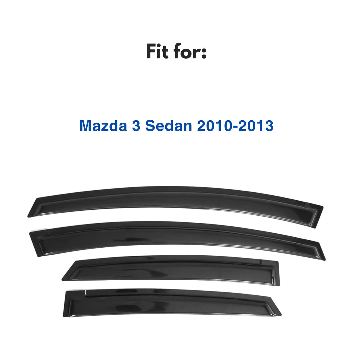 Q: Are the IG Window Visors compatible with all Mazda 3 models?A: No, the IG Window Visors are specifically designed to fit the Mazda 3 Sedan models from 2010 to 2013. Please ensure you have a Sedan model to ensure proper compatibility.