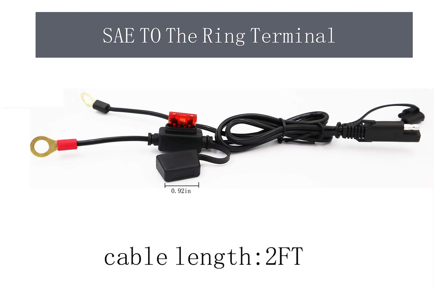 Imestou 2Ft Sae To O Ring Terminal Harness 2 Pin Quick Disconnect Plug, Eyelet Terminal Harness Extension Charge Cord Quick Disconnect Sae Connection Lead For Motorcycle, Car, Tractor 10A Fuse (5Pcs)