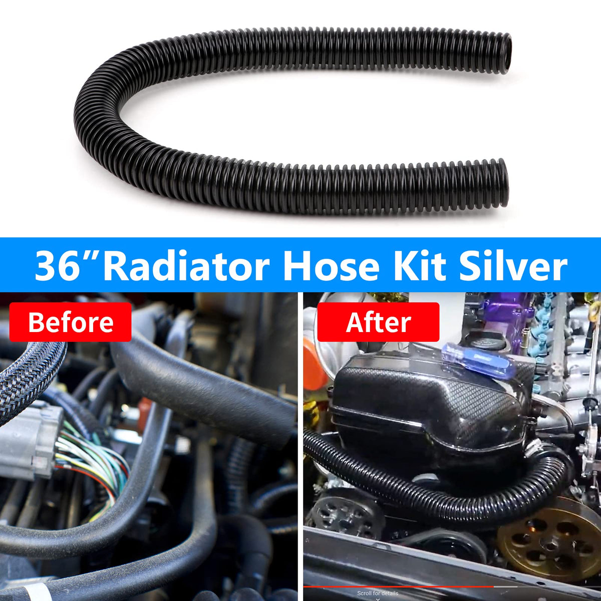 iRKY 36'' Stainless Steel Radiator Hose Flexible Universal Water Hoses Adapter Coolant Radiator Hose Kit With 2Pcs Chrome Caps S