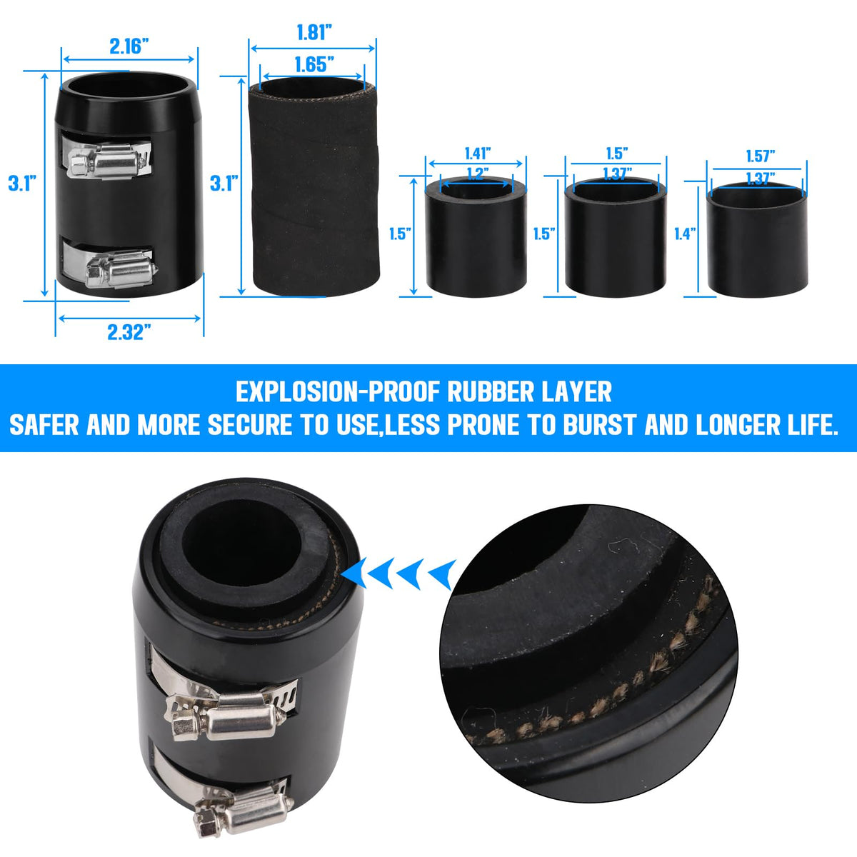 Product Feature: Flexible radiator hose Made from extremely high quality stainless steel Stainless hose will not blow or rot out like a rubber one These hoses can be formed by simply bending them to the desired shape, Flexible design eliminates the hassle of finding a rubber hose with just the right bends The Hose Can Be Cut To Desired Length. This chrome radiator hose kit can be used with 1 1/4'', 1 1/2'', 1 3/4'' radiator necks 100% brand new Package Includes: 1x Stainless Steel Flex Hose, 48'' length 4x End Cap Covers, Chromed Aluminum 4x Rubber Hose Sleeve Adapters 4x Rubber Reducers, 1-1/4'' I.D. 4x Rubber Reducers, 1-1/2'' I.D. 8x Hose Clamps Specifications: Color: Black Hose Material: Stainless Steel Fitment: Universal This kit can be used with 1-1/4'', 1-1/2'', or 1-5/8'' radiator necks. Kit contains enough ends for 2 lengths of hose. Clamps, sleeves, reducers, caps included. Professional installation is highly recommend.(No Instruction Included) Note: Please allow 1-3CM differs due to manual measurement and due to the different display and different light, the picture may not reflect the actual color of the item. Install Steps: Take the OE rubber hose off. Mark the length for your needs. Cut the stainless steel hose carefully. Add the chrome caps correctly. Here is the finshed piece installed. Enjoy new hose for your daily driving.