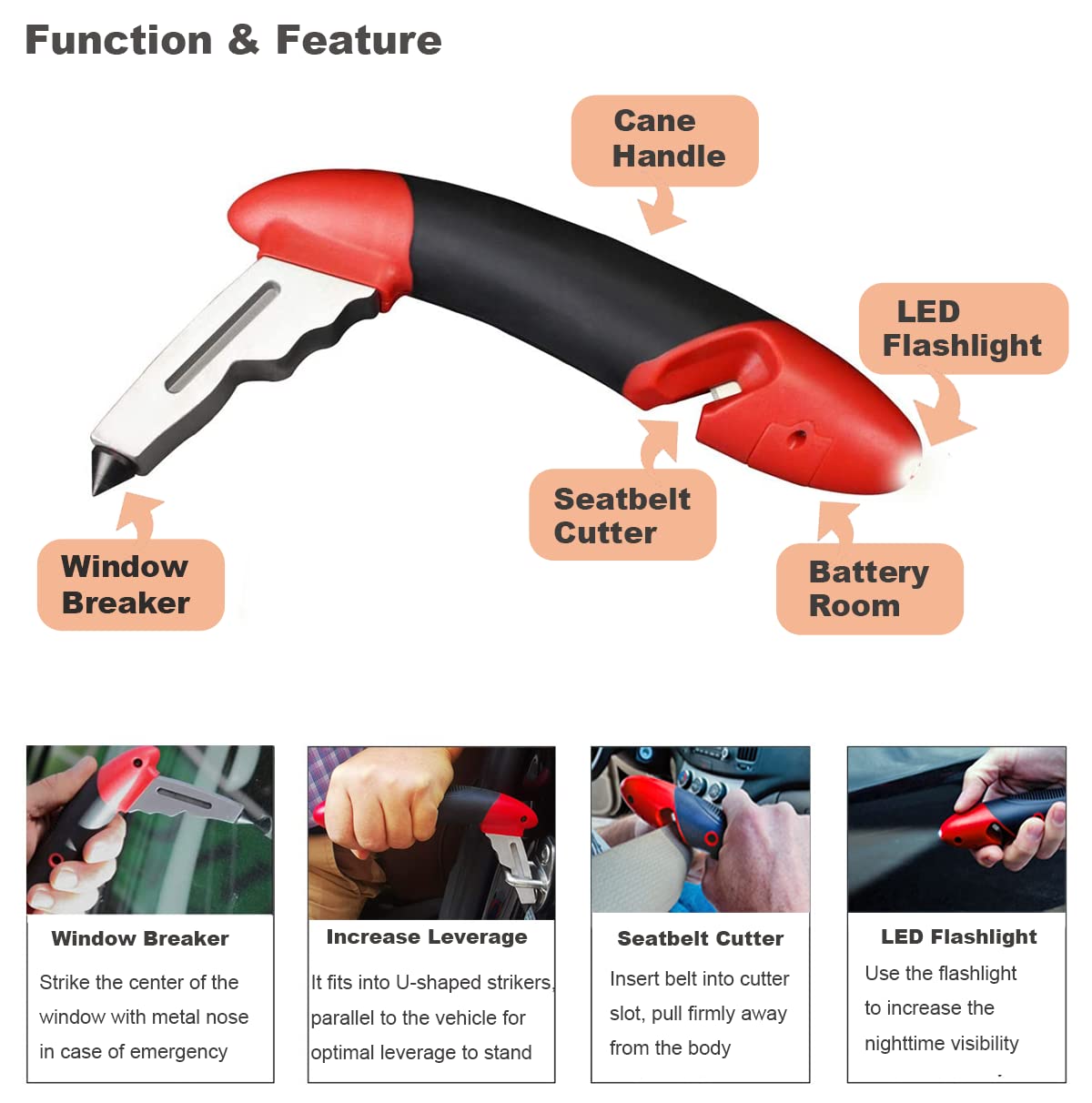 Package Includes: Led Car Handle Assist Holder*1 Vehicle Assist Grab Handles*1 Warning: 1.When Using, Please Support Your Hand At The Black Rubber Position. 2.To Change Battery, Unscrew Panel In Handle To Reveal Battery Compartment. Basic Function: 1.Emergency Window Breaker 2.Door Catch Hook 3.Seatbelt Cutter 4.Led Flashlight Simply Hook It Into The U-Shaped Striker (Part Of The Door Catch Mounted On The Central Pillar) And Use It As A Hand-Hold To Support Your Weight. Then, When You'Re Safely In Or Out, Unhook It And Stow In The Glove Box.Super-Strong And Totally Dependable, It Features A Comfortable Non-Slipgrip, Integral Led Flashlight With 3 X Ag13 Batteries (Included),An Emergency Seatbelt Cutter And Glass Breaker. If You Or Your Family And Friends Have Trouble Getting On And Off The Car, Then The Car Handle Is Your Best Choice! The Perfect Gift For The Elderly, Injured, Disabled, Pregnant Or Anyone Who Needs Support. Car Assist Handle Kit With Car Assist Strap Allows The User To Enter And Exit The Vehicle Easily, With Non-Slip Design Soft Pad, It Is Comfortable For The Elderly, Injured Or Anyone With A Minor Physical Disability. When Used Combined They Give You Very Sturdy Support And Protection While Entering And Exiting Your Vehicle.