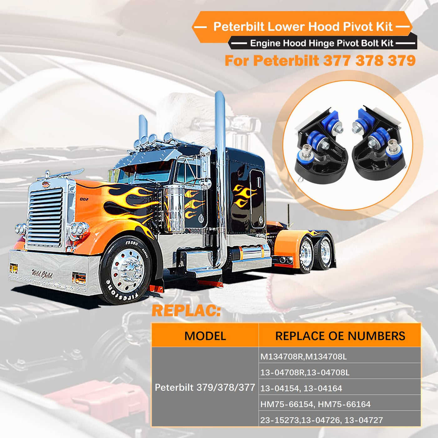 M134708R & M134708L Both For Peterbilt Lower Hood Pivot Kit And Engine Hood Hinge Pivot Bolt Kit Fits For Peterbilt 377 378 379 Replac:13-04708R 13-04708L 13-04154 13-04164