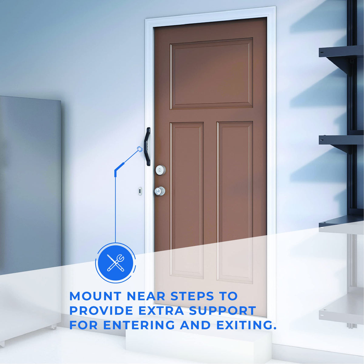 Q: What features make this grab handle safe to use?A: This grab handle features molded finger grips for added safety and a non-slip textured surface, providing a secure hold for users in various conditions.