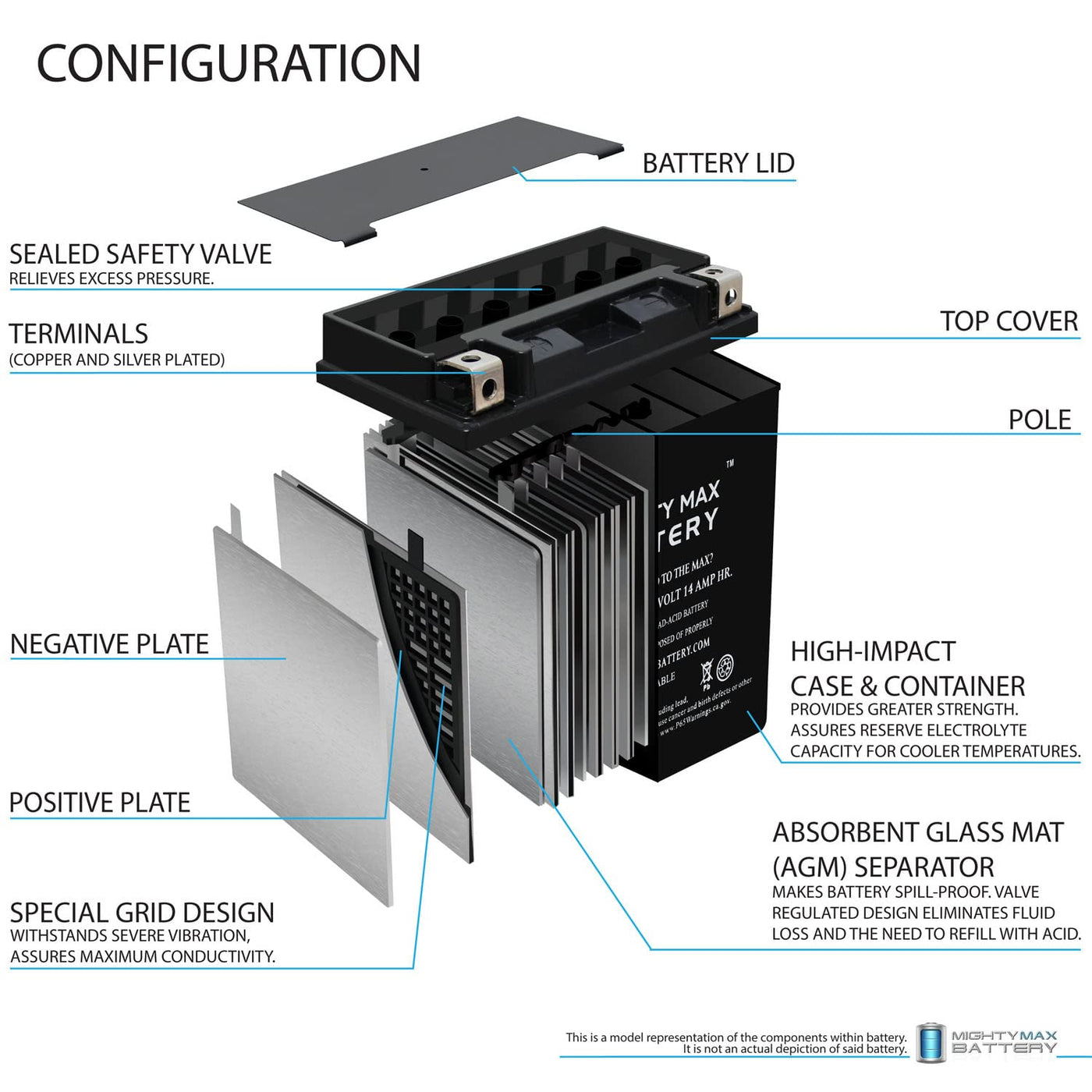 Mighty Max Battery Ytx16-Bs -12 Volt 14 Ah, 230 Cca, Rechargeable Maintenance Free Sla Agm Motorcycle Battery