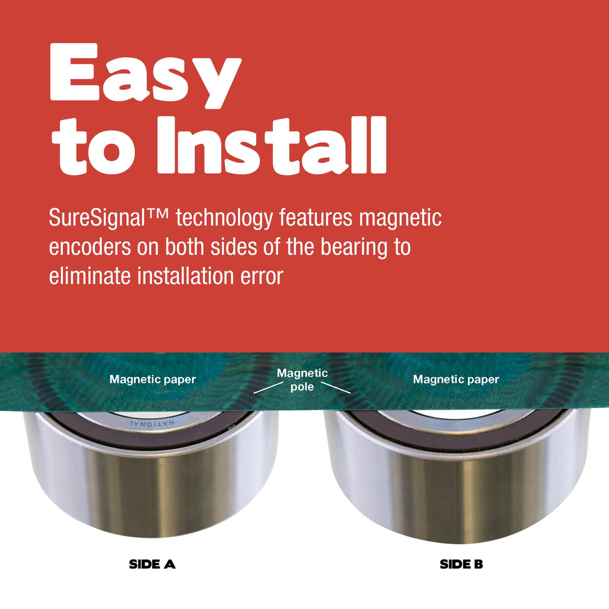 Q: How easy is it to install the National 510117 Wheel Bearing Collar?A: Installation of the National 510117 Wheel Bearing Collar is straightforward, thanks to SureSignal technology, which features magnetic encoders on both sides of the bearing. This design helps eliminate installation errors, making it user-friendly even for those with limited mechanical experience.