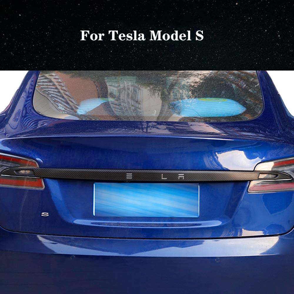 Oubolun Rear Tailgate Trunk Lid Garnish Cover for Tesla Model S 2016-2022 Car Exterior Accessories ABS Imitation Carbon Fiber Pr