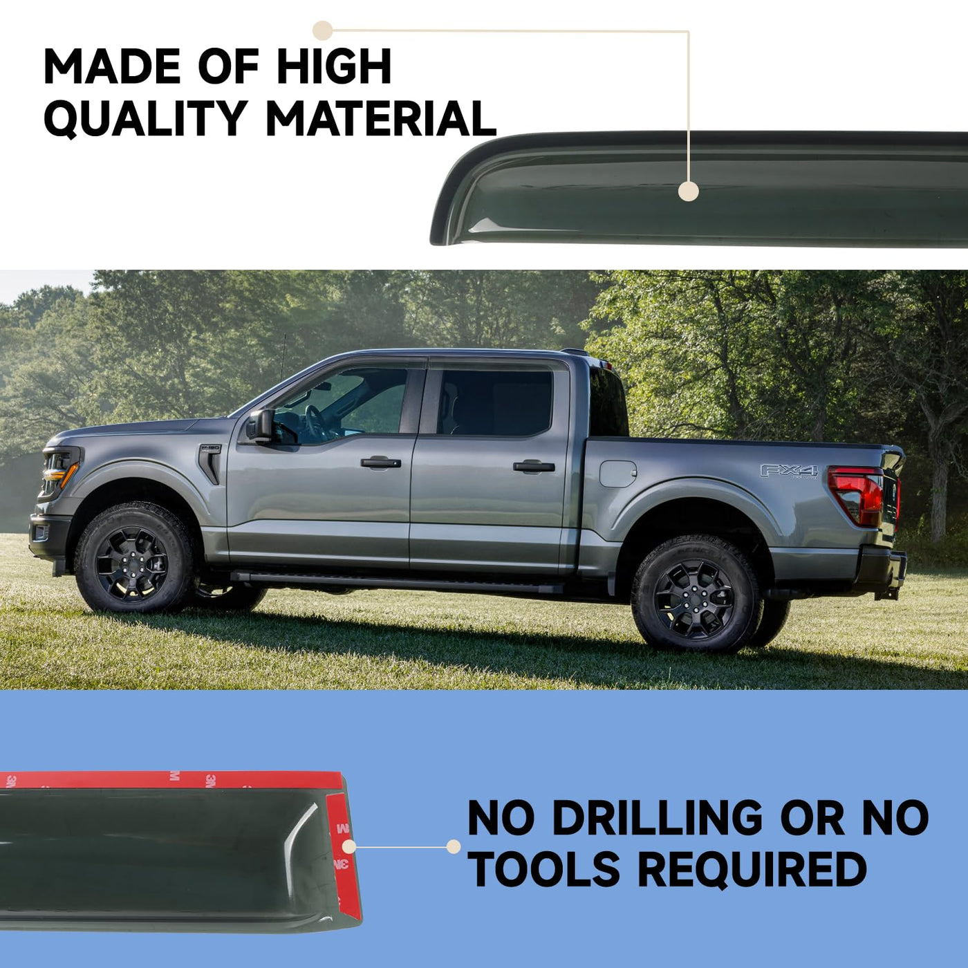 Outside Mount Window Visors Rain Guards Fit for 2015-2024 Ford F150 SuperCrew, Fit for 2017-2024 F150 Raptor F250 F350 F450 F550