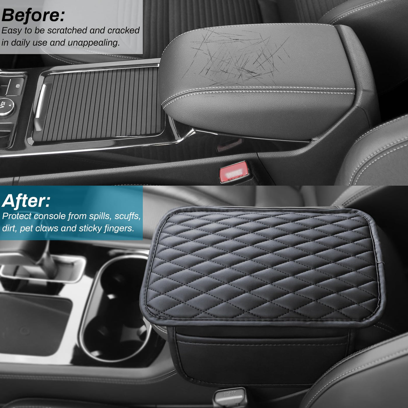 Q: Are there storage options with this console cover?A: Yes, the console cover includes dual side storage pockets measuring 8.66 x 5.12 inches, perfect for keeping your phone, keys, and other essentials organized and within reach.