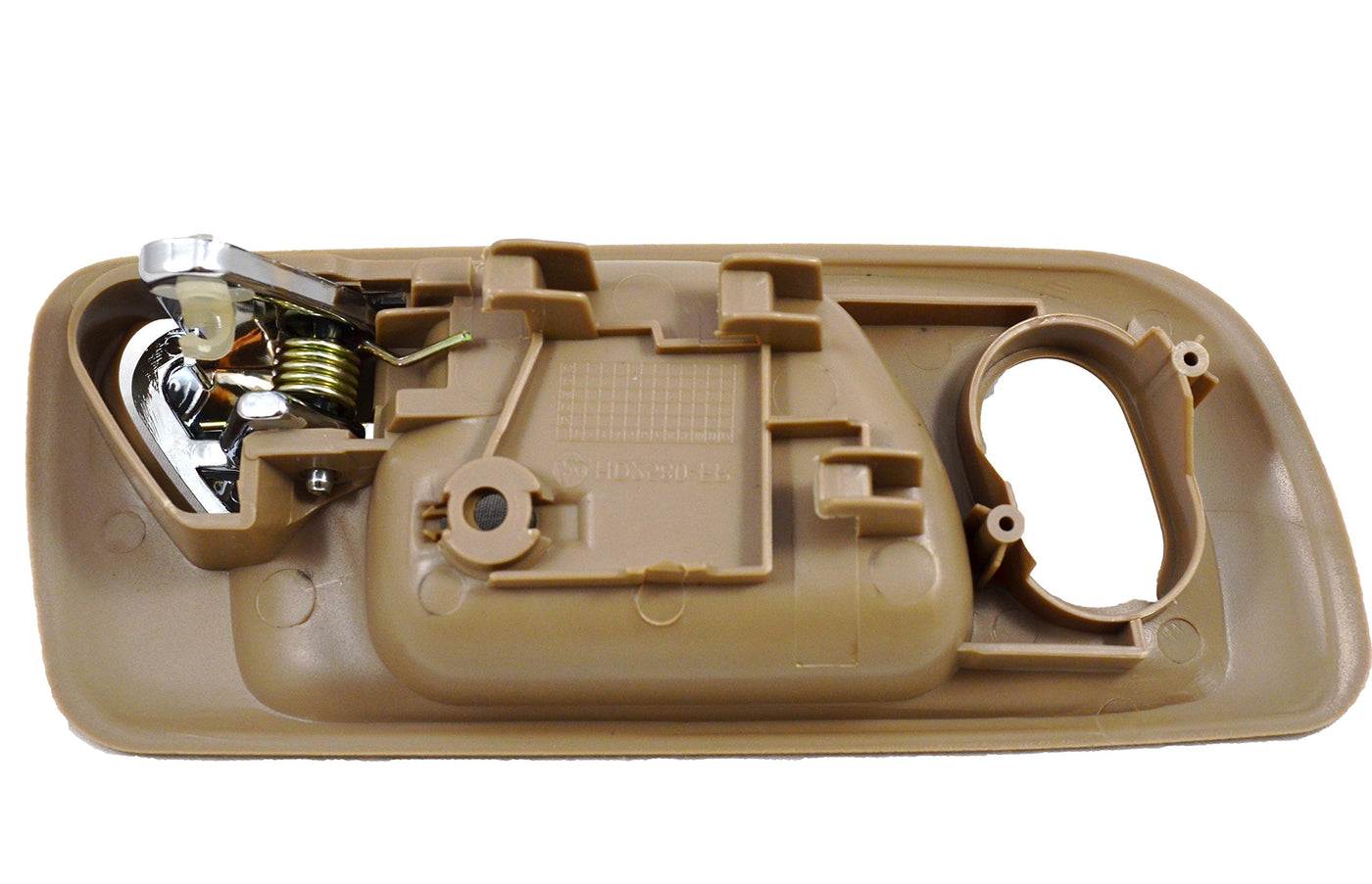 Q: What materials are used in the construction of this door handle?A: The PT Auto Warehouse HO-2580ME-FL features a beige/tan housing combined with a chrome lever, providing both durability and aesthetic appeal.
