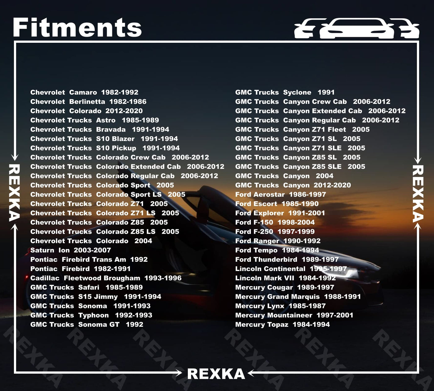 Q: What vehicles are compatible with the Rexka M8-1.25 Extruded U Nut & Body Bolts Screw Kits?A: The Rexka M8-1.25 Extruded U Nut & Body Bolts Screw Kits are compatible with a wide range of vehicles including GM, Ford, Chevrolet, Buick, Oldsmobile, Pontiac, Cadillac, and GMC Trucks. They are designed to fit various models and are ideal for both cars and trucks.