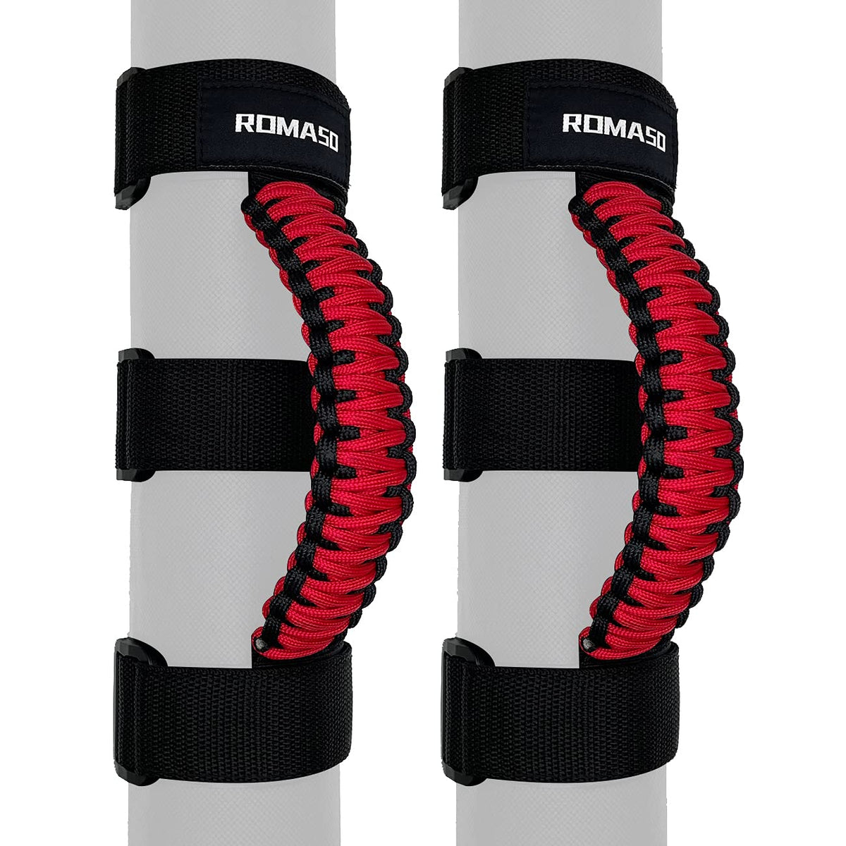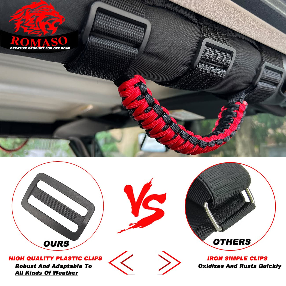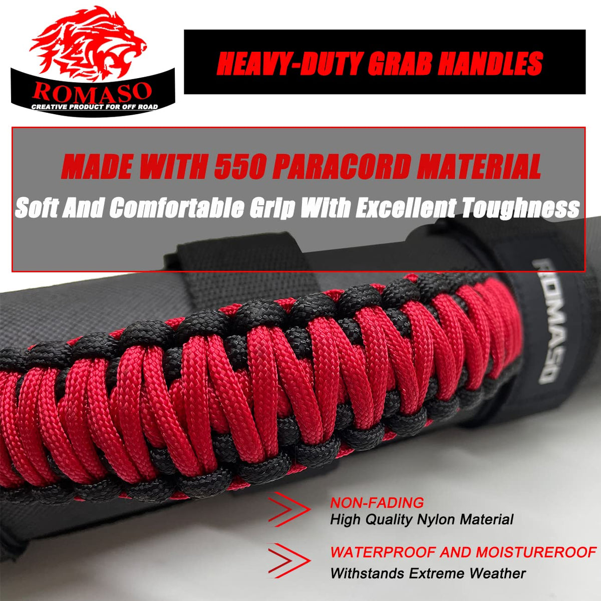 ROMASO Roll Bar Grab Handle for Jeep Wrangler,Grab Handle for Jeep Wrangler YJ JK JL,Comfortable Paracord Material(Black/Red),Pa
