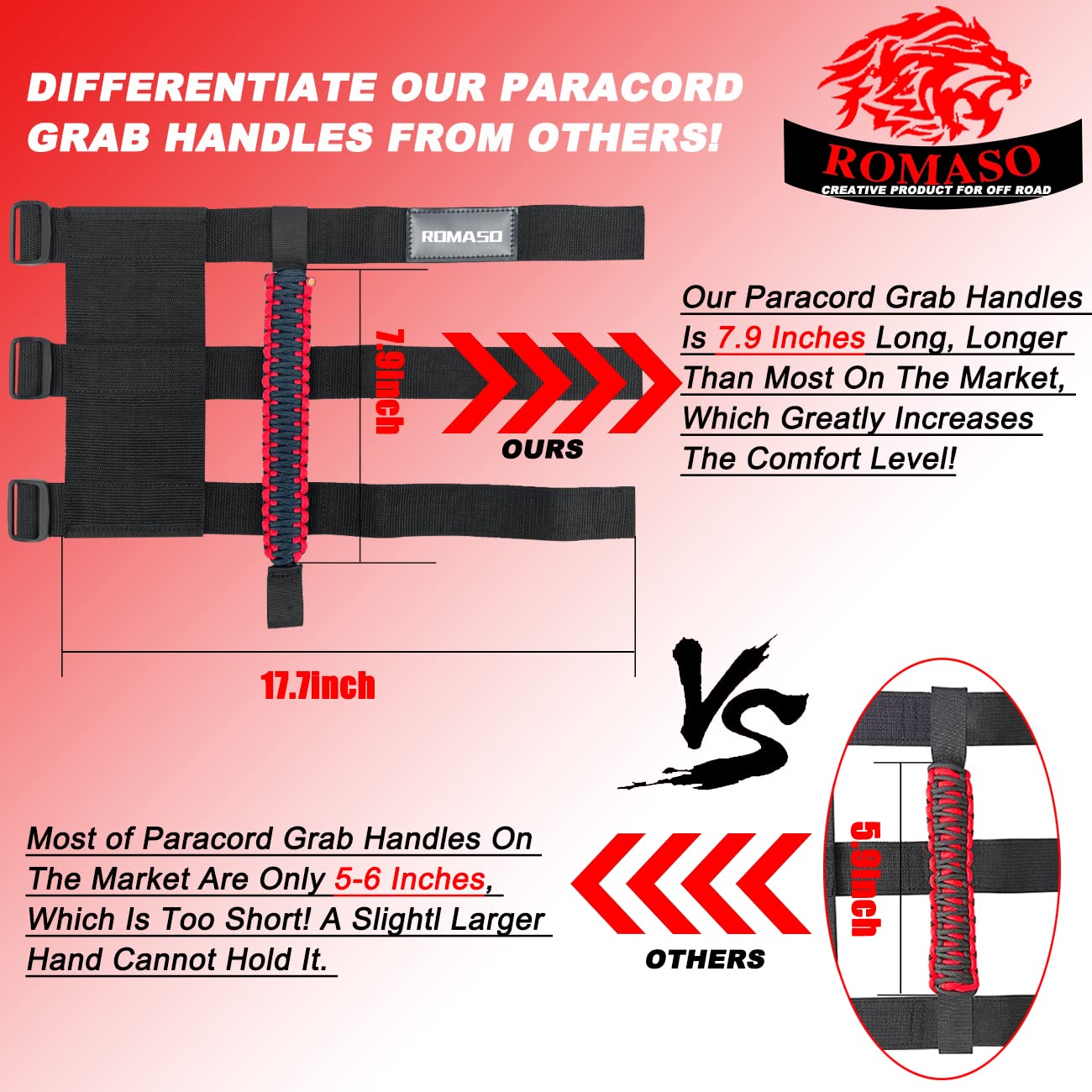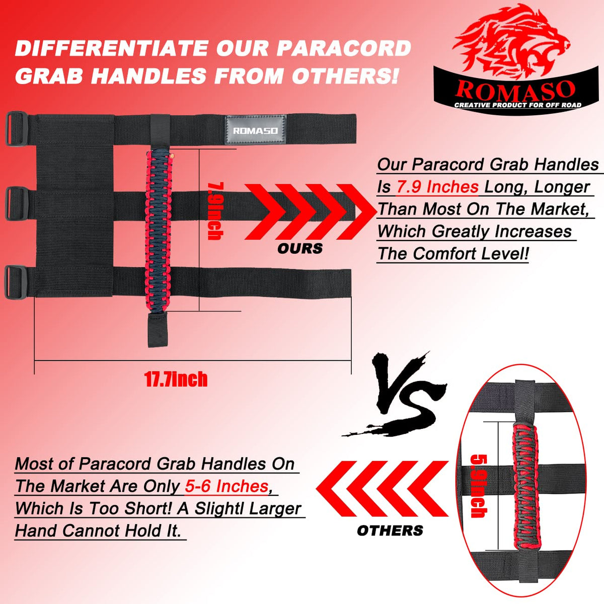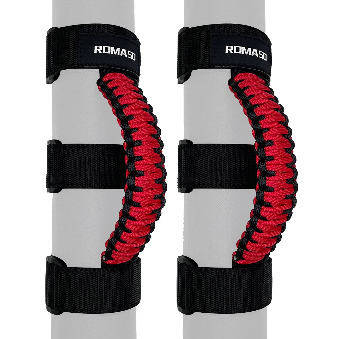 ROMASO Roll Bar Grab Handle for Jeep Wrangler,Grab Handle for Jeep Wrangler YJ JK JL,Comfortable Paracord Material(Black/Red),Pa