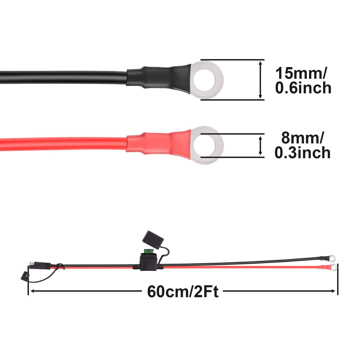 SAE to O Ring Terminal Harness, with 30A Protection Fuse, 2-Pin Quick Disconnect Plug,SAE Battery Extension Cable for Motorcycle Cars RV 2ft/60cm 10AWG