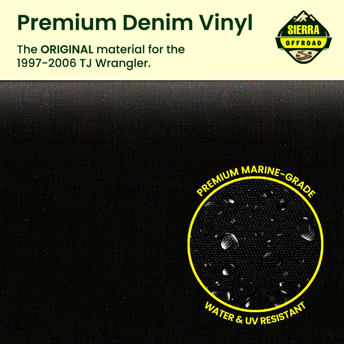 Sierra Offroad Soft Top For 1997 To 2006 Jeep Wrangler Tj - Black, Denim Vinyl - 2 Door Jeep Soft Top With Rear Plastic Tinted Windows - Factory Precision Fit Replacement - No Upper Door Skins