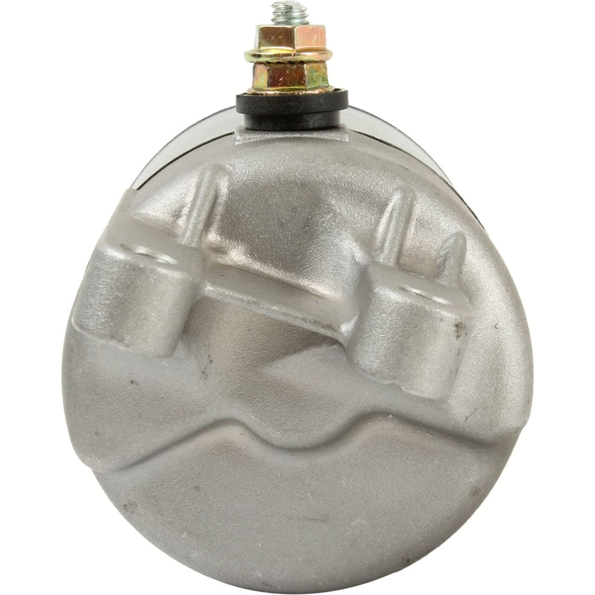 Q: What are the specifications of this starter?A: The starter has a voltage of 12 volts, rotates counterclockwise (CCW), and features a PMDD type. It has 10 teeth/splines and a pinion/splines outer diameter of 12.8 mm (0.504 inches). The mounting holes are 6.5 mm ID unthreaded, and it weighs approximately 3.4 lbs (1.5 kg).