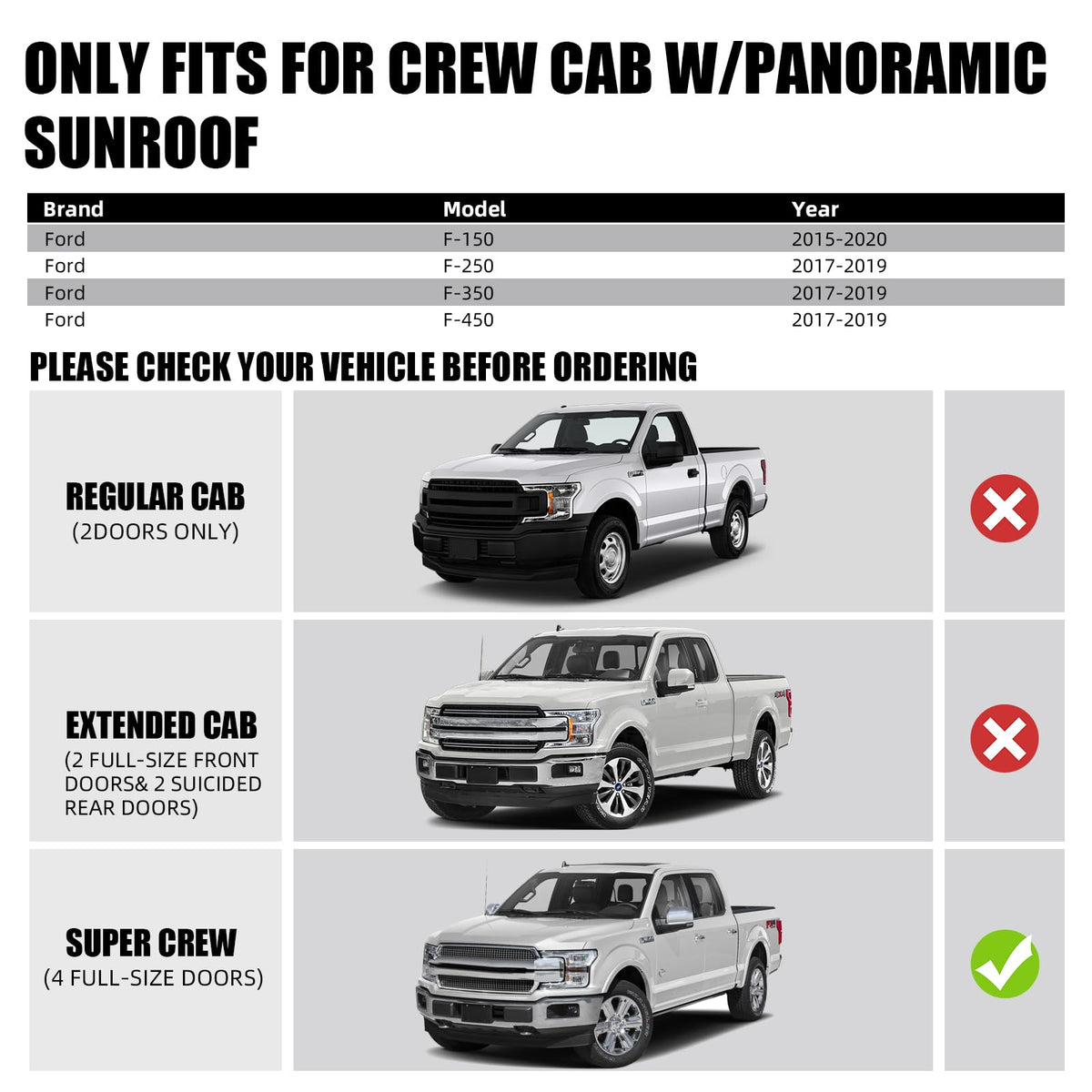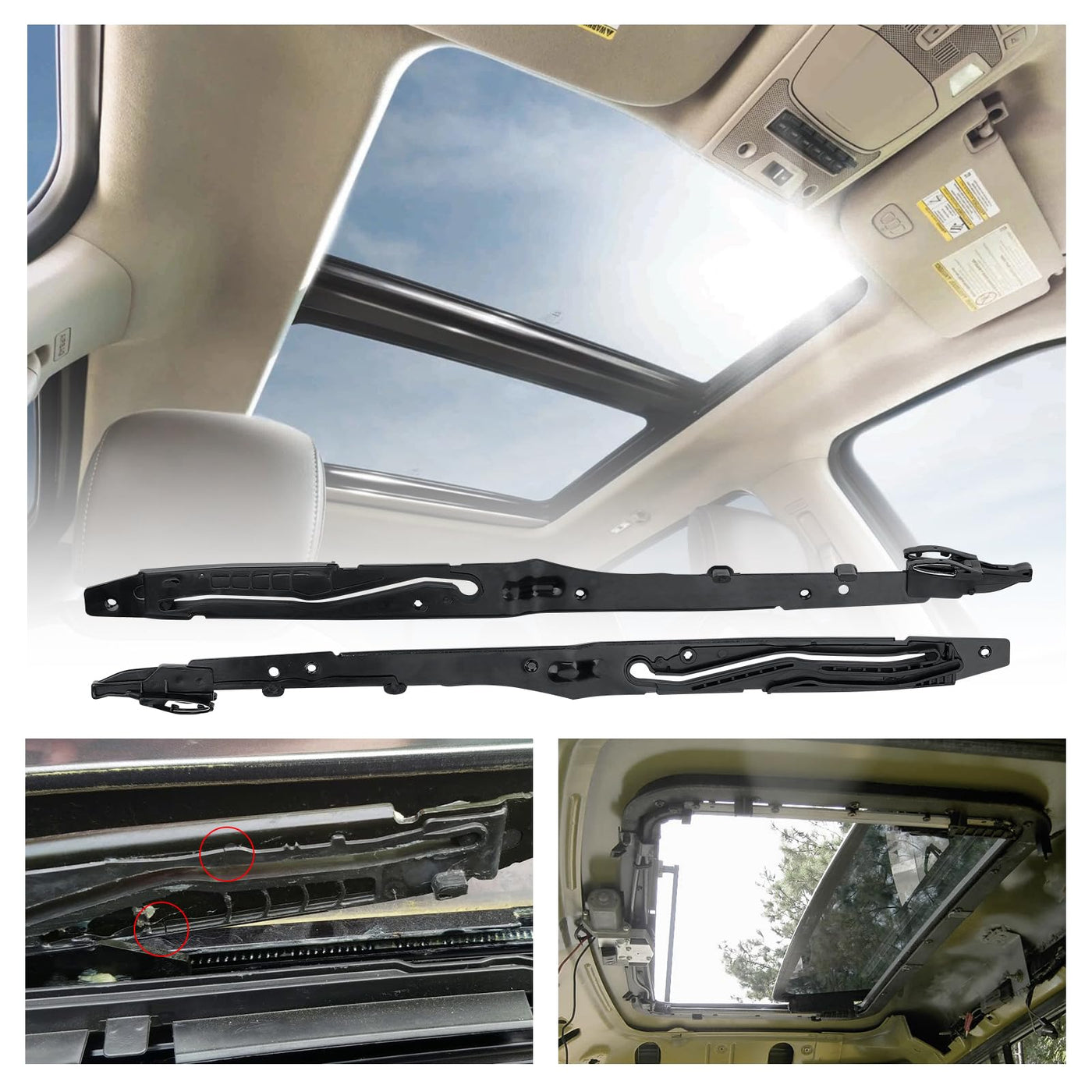 Sunroof Guide Track Rails Assembly OEM Replace #: FL3Z-1651071-A FL3Z-1651071-B Compatibility: Compatible withFord (crew cab with panoramic sunroof) F150 (2015-2020) Ford F250/F350/F450 (2017-2019 ) Features: ?Premium Quality?Sunroof Repair Kit is made of high-quality ABS plastic and steel, ensuring durability and corrosion resistance. ?Improved Functionality?Faulty lift arms can cause your panoramic sunroof to malfunction. Tomanic Sunroof Guide Arm Repair kit is designed to address issues such as sunroof jamming and rail breakage, allowing for easy repairs and maintaining the proper function of the sunroof. ?Hassle-Free Installation?Tomanic Sunroof Guide Arm Repair Kit is designed based on the original sunroof structure, allowing for direct replacement of original parts and reducing installation difficulty. ?Satisfaction Guaranteed?Compared to the high cost of replacing the entire sunroof, this repair kit is affordable and can help you save unnecessary expenses while ensuring the normal operation of your sunroof. We stand behind our Sunroof GuideTrack Rails Assembly and offer a satisfaction guarantee. If you're not completely satisfied, we'll make it right.