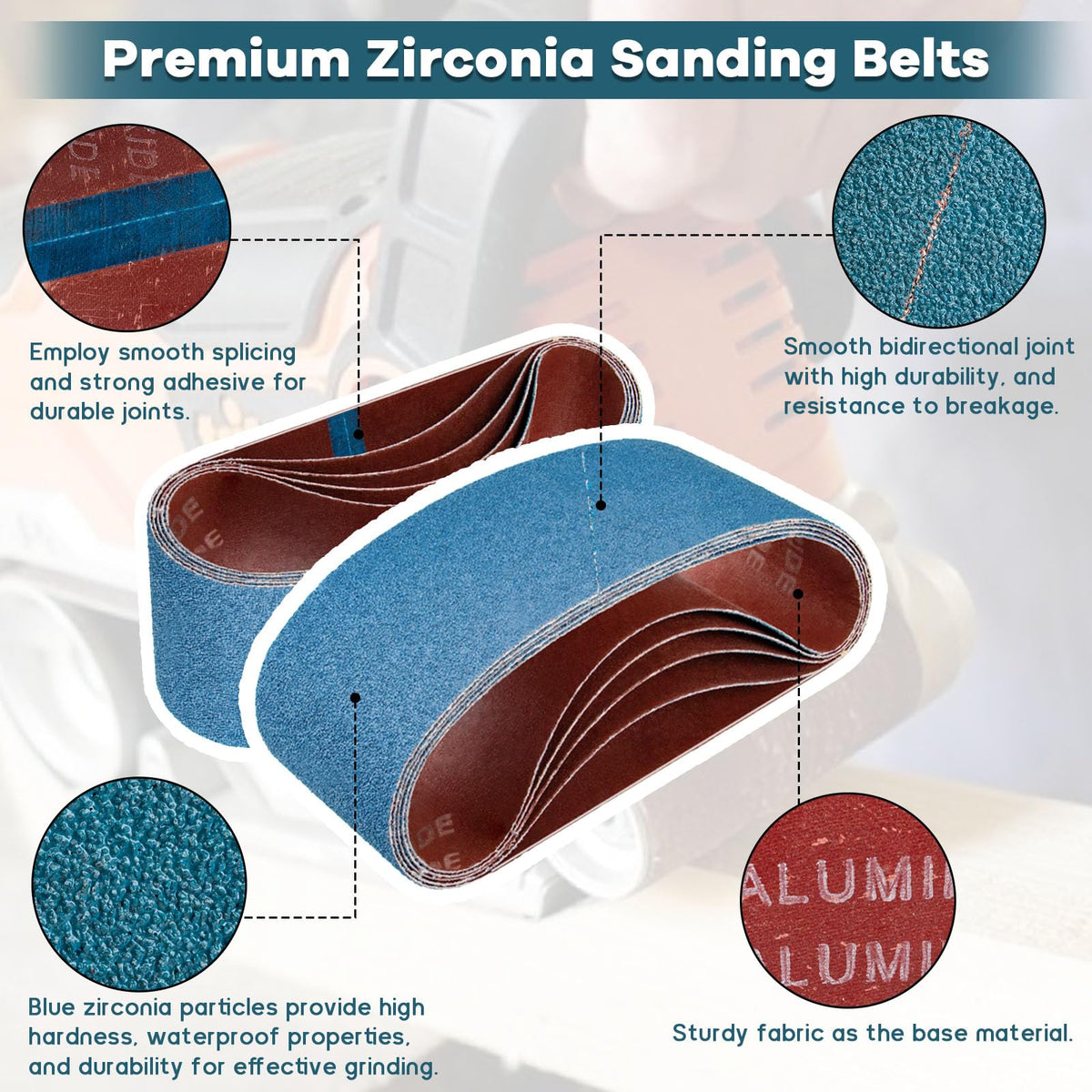 Q: What materials are these sanding belts made from?A: These sanding belts are made from premium blue zirconia particles, which offer superior sharpness and durability compared to traditional sanding options, allowing for efficient performance across various materials.