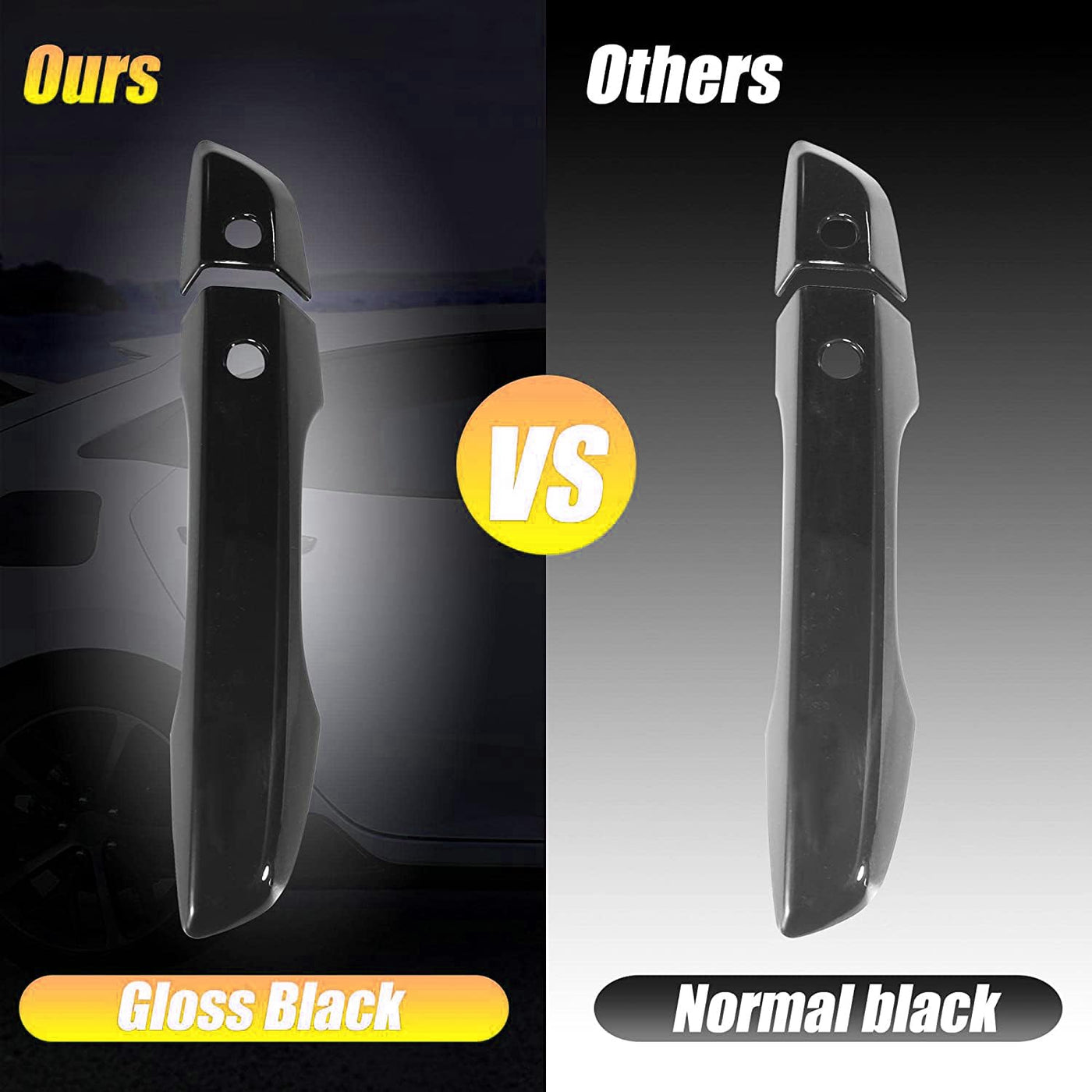 Q: Will these door handle covers help prevent scratches on my car?A: Yes, the glossy black door handle trim covers not only enhance the aesthetic appeal of your car but also help cover existing scratches and protect your car door from future scratches and abrasions.