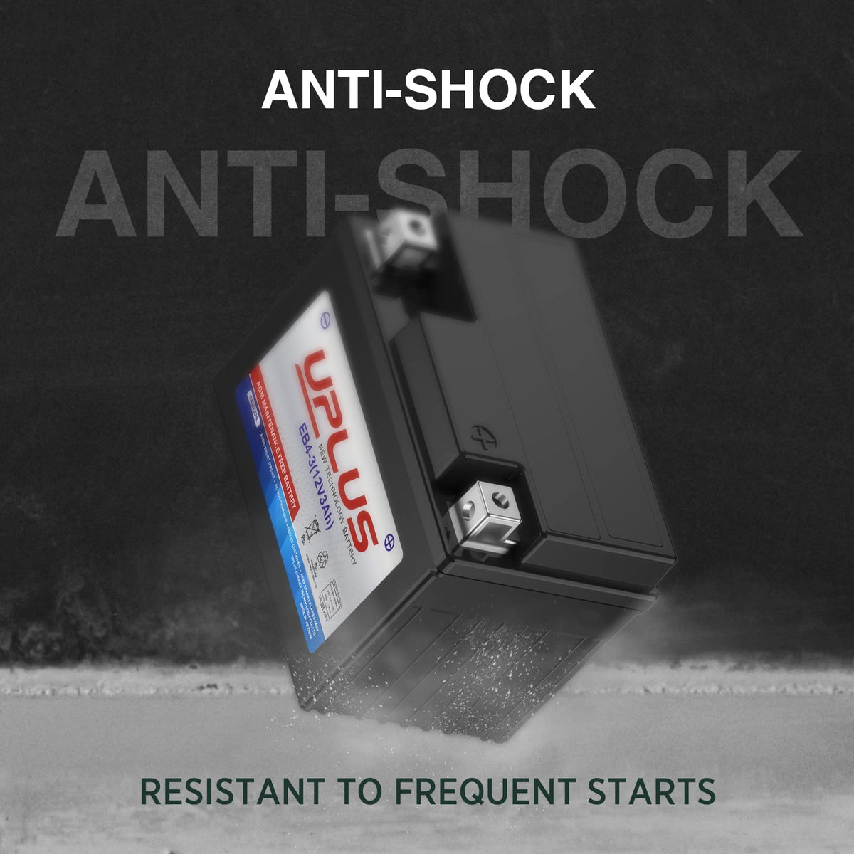 Q: What are the main features of the UPLUS YTX4L-BS motorcycle battery?A: The UPLUS YTX4L-BS motorcycle battery features a maintenance-free design, is spillproof and leakproof, and is U.L. recognized and CE certified. It utilizes Absorbed Glass Mat (AGM) technology for superior starting power and deep cycle capacity, along with extreme resistance to freeze, heat, and vibration.
