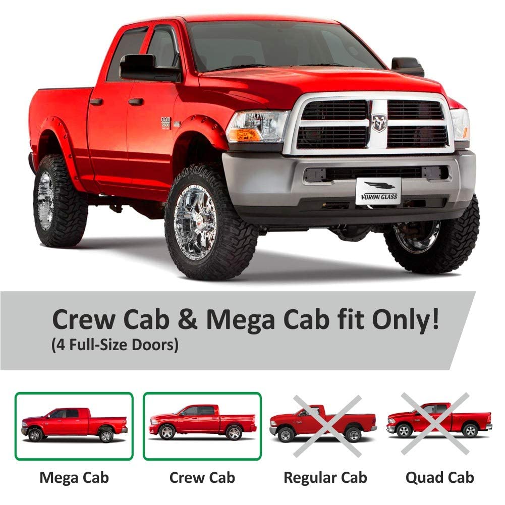 Voron Glass In-Channel Extra Durable Rain Guards For Trucks Dodge Ram 2009-2018 Crew Cab, Window Deflectors, Vent Window Visors,