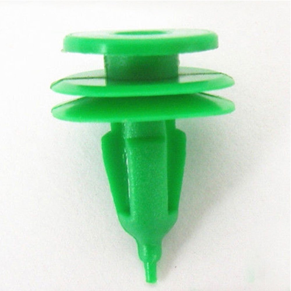Q: What are the dimensions of this clip fastener?A: The clip fastener has a hole fit of 8mm, a collar diameter of 13mm/18mm, and a stem length of 25mm, ensuring a precise fit for your vehicle.