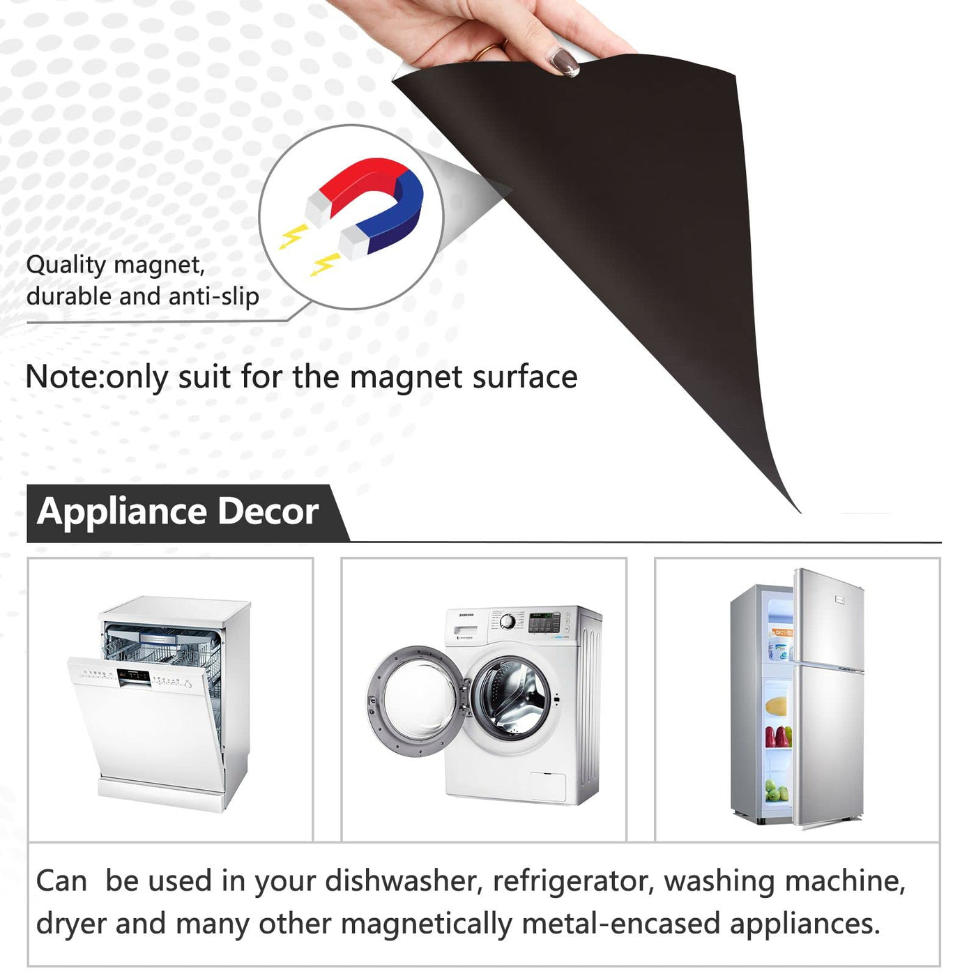 Dishwasher Magnets About the Magnets ?Material? Pvc+Magnets ?Size?23x26x0.2 Inches ?Weight?460g ?Applicable scenario?Metal shell of machines, such as dishwashers, refrigerators, washing machines, or anything magnets can attach on. Product Description Strong adhesion dishwasher magnets can attach tightly to the item's surface, but it is also easy to take off with no marks leave on it. The magnets can be stuck on the dishwasher's front door or the refrigerator door as decoration. It works as well as a protection for the machines. easily trim to fit different kinds of machines, easily clean, cute, and practical, definitely your best choice. '