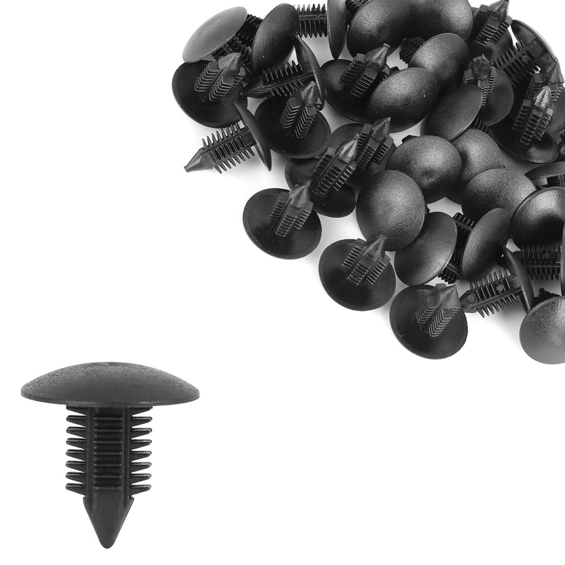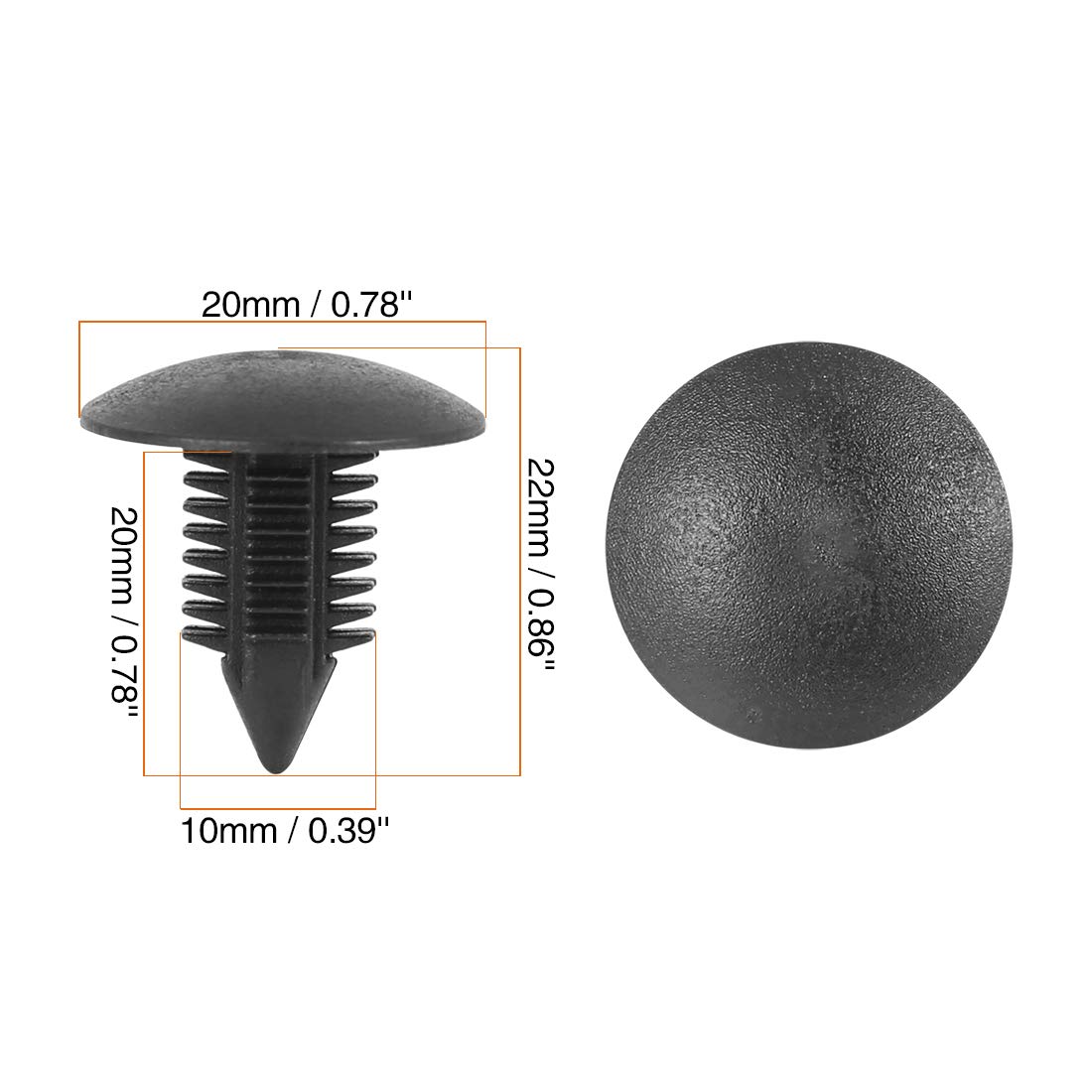 Description:Used widely for car bumper, door, side skirt or other car surface.They can be used on motorcycle, buses, cars, truck, caravans, etc.These plastic rivets are suitable for firmly holding anything within an fitting diameter hole.Specification: Color: BlackMaterial: PlasticTotal Length: 22mm / 0.86''Head Diameter(max.): 20mm / 0.78''Stem Length: 20mm / 0.78''Fit Hole Diameter: 9mm / 0.35''Size: 22x20mm / 0.86x0.78(L*Max.D)Package Included:40 x Plastic Rivet