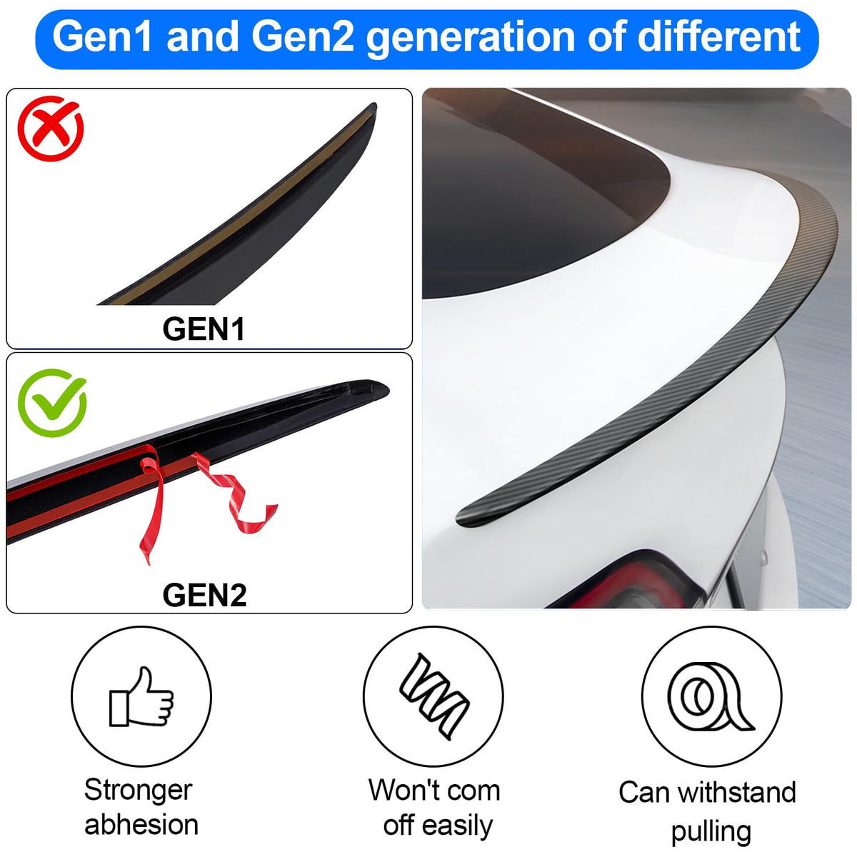 YJMOTOR Spoiler for Tesla Model 3 Rear Spoiler Wing ABS Material Rear Trunk Lip Model 3 Accessories Carbon Fiber Style Custom Fi