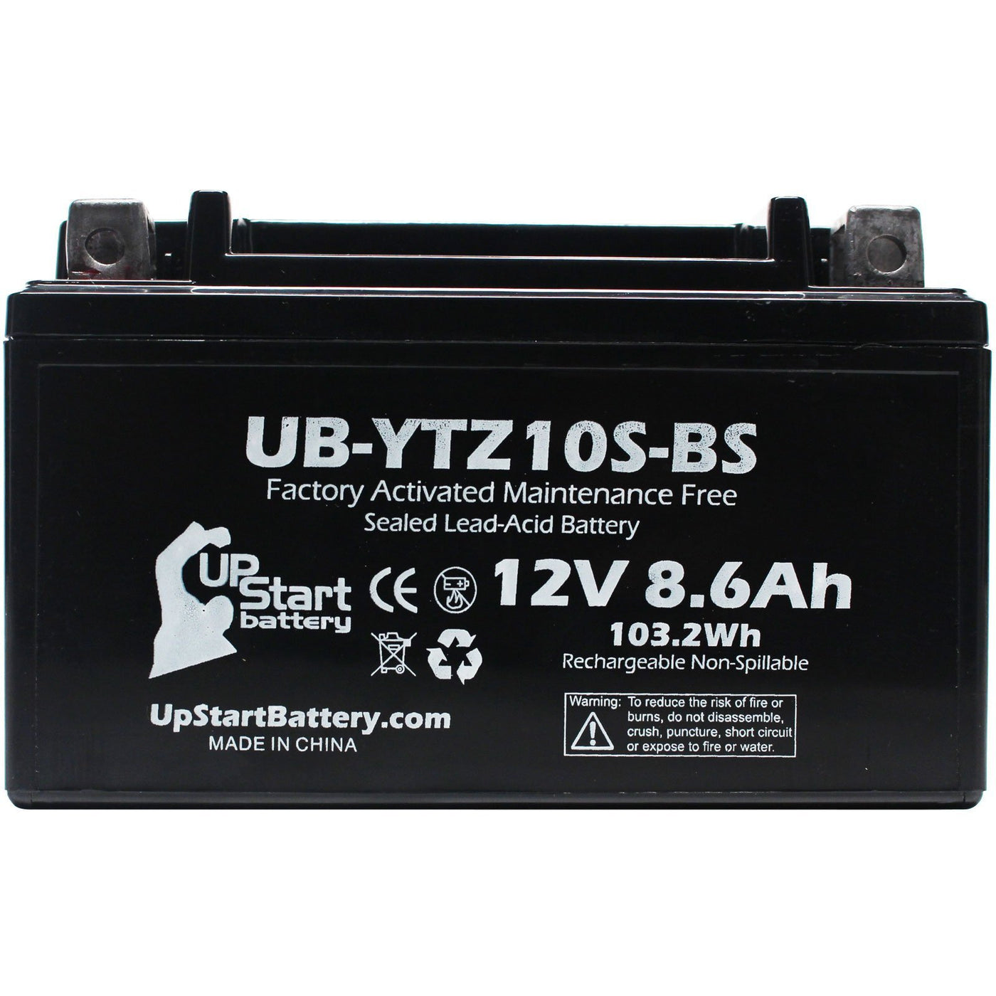 Battery Specifications: Ytz10S-Bs Chemistry: Sealed Lead Acid/Agm Output Volts: 12V Capacity: 8.6Ah Brand: Upstart Battery Warranty: One Year Warranty This Product Works In Or Replaces The Following Model Numbers: 2002 Cb900F 919 2002 Cbr954Rr 2003 Cbr954Rr 2004 Cb900F 919 2004 Cbr1000Rr 2004 Yfm35R Raptor 2004 Yzf-R1 2005 Cbr1000Rr 2005 Yfm35R Raptor 2005 Yzf-R1 2006 Cbr1000Rr 2006 Agusta Brutale 2006 Morphous 2006 Yfm35R Raptor 2006 Yzf-R1 2007 Cbr1000Rr 2007 Agusta Brutale 2007 Lt-R450 Quadracer 2007 Morphous 2007 Yfm35R Raptor 2007 Yzf-R1 2008 Agusta Brutale 2008 Lt-R450 Quadracer 2008 Yfm35R Raptor 2008 Yzf-R1 2009 S1000Rr 2009 Cb1000R 2009 Duke 2009 Supermoto 2009 Agusta Brutale 1078Rr 2009 Agusta Brutale 2009 Lt-R450 Quadracer 2009 Yfm35R Raptor 2009 Yzf-R1 2010 S1000Rr 2010 Cb1000R 2010 Cbf1000F 2010 Duke 2010 Supermotoplease Note: This Is An Upstart Battery Brand Replacement Part, Not An Oem Product. This Product Is Not Affiliated With Any Oem Brands And Is Not Covered Under Any Warranties Offered By The Original Manufacturers. Any Warranties For This Product Are Offered Solely By Upstart Battery. All Mentions Of Brand Names Or Model Descriptions Are Made Strictly To Illustrate Compatibility. All Brand Names And Logos Are Registered Trademarks Of Their Respective Owners.