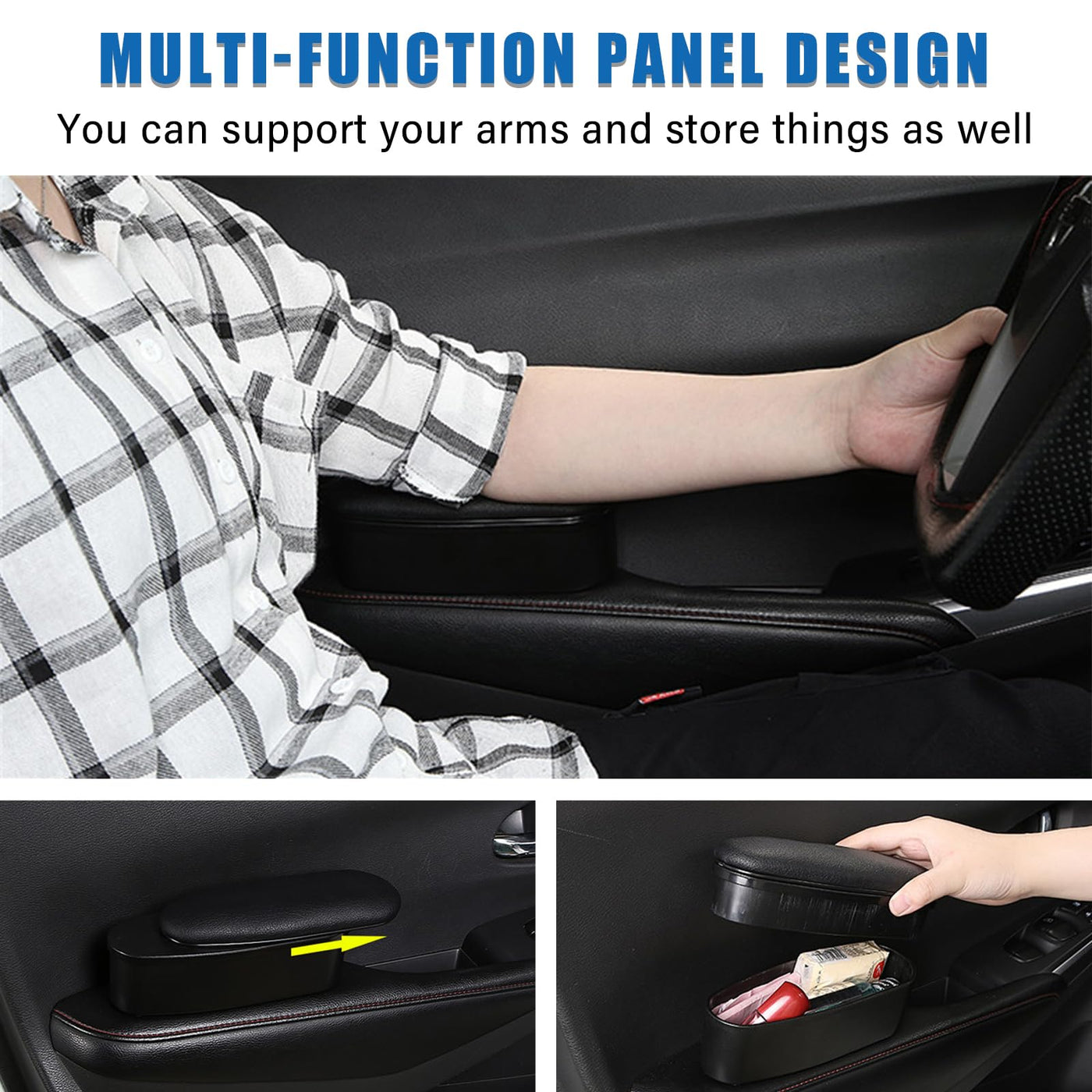 Ziciner Car Armrest Support Cover, Universal Leather Car Side Door Armrest Pillow, Relieve Driver Arm Fatigue Storage Box Cushion Pad, Automotive Interior Accessories For Most Vehicles (Black)