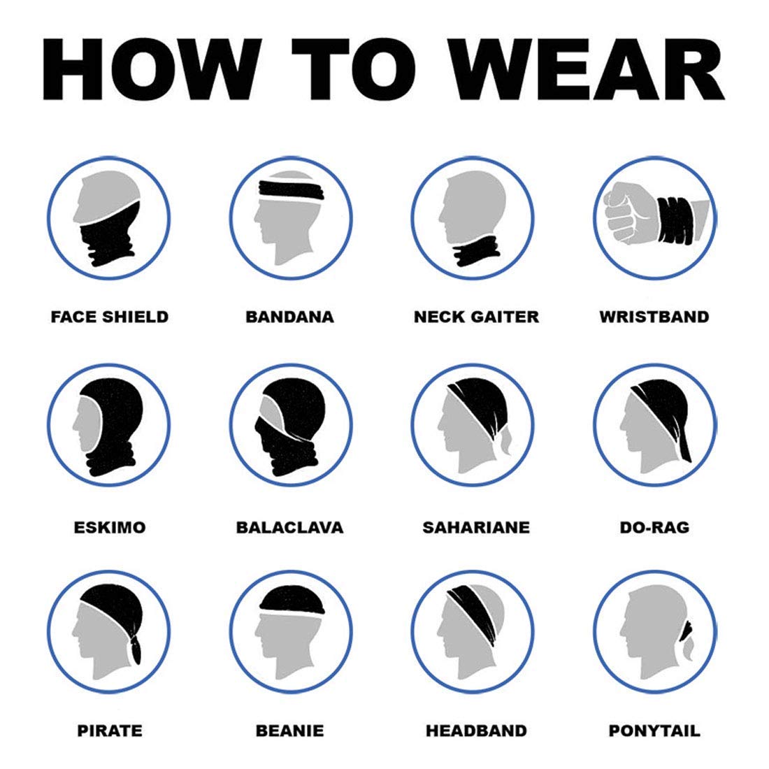 12 In 1 Ways To Wear:Can Be Applied As Bandanna, Scarf, Beanie, Headband, Wristband, Helmet-Liner, Neck Gaiter, Dust Screen Or Hair Band. Check Out Our Images For Use.