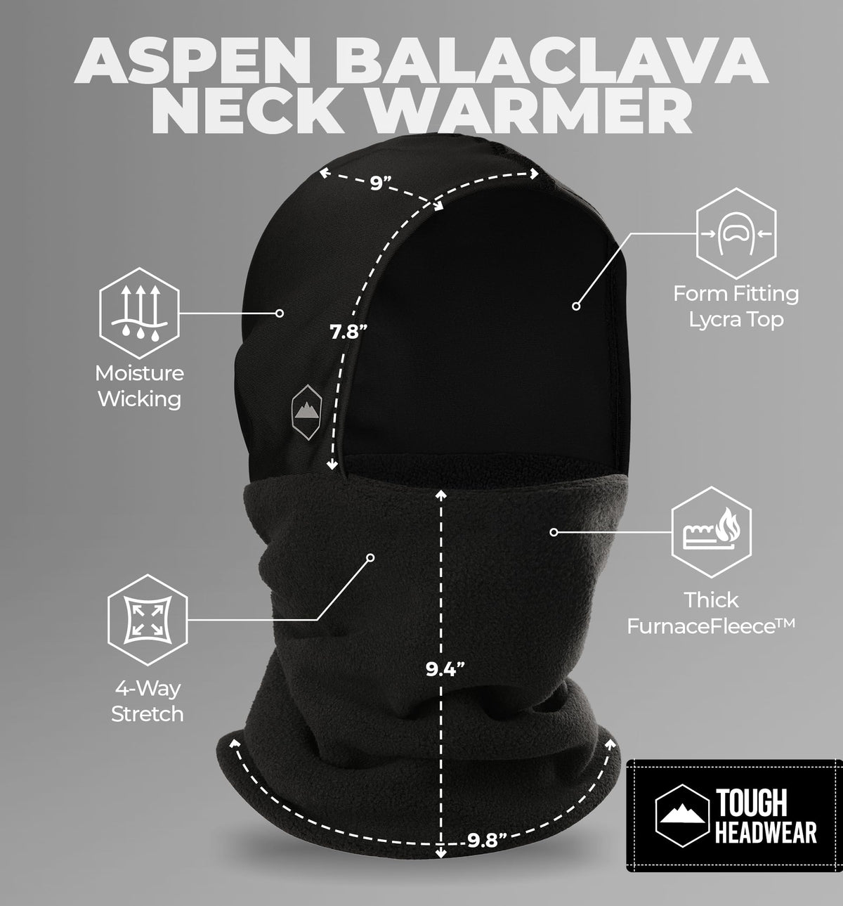 Tough Headwear Winter Neck Warmer Ski Mask For Men & Women, Winter Face Mask For Cold Weather, Motorcycle Helmet Liner - Black | Balaclava Style