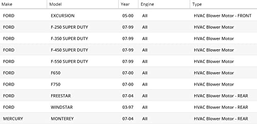 OAW 100-F099 Front HVAC Blower Motor for (1999 2000 2001 2002 2003 2004 2005 2006 2007) Ford F250 F350 F450 F550 Super Duty Repl