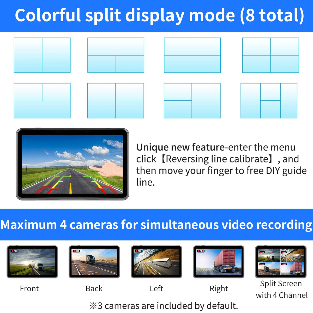 10.1'' Wired Backup Camera System With Touch Screen Monitor For Truck Rv Bus Trailer, 3 Reverse Rear View & Side View Ahd1080P C