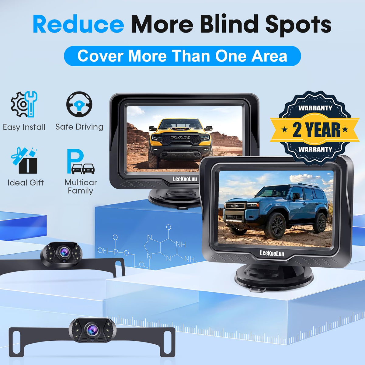 Our Dual Backup Camera System Is Designed To Offer Unmatched Convenience And Safety For Drivers Who Own Two Vehicles. Whether You'Re Backing Out Of Your Driveway, Parking In Tight Spaces, Or Hitching A Trailer, This System Ensures That You Have Full Visibility Of Whats Behind You. Its Like Having An Extra Pair Of Eyes Watching Your Back-Giving You Confidence Every Time You Reverse. This System Is Perfect For Two-Car Families Or Anyone Who Needs To Monitor Two Vehicles Simultaneously. With High-Definition Cameras, Weatherproof Design, And Simple Installation, It Offers A Seamless, Reliable Solution For Daily Driving. The System Has Been Crafted To Meet The Needs Of Safety-Conscious Drivers, And Its Designed To Make Reversing Easier, Safer, And More Accurate.