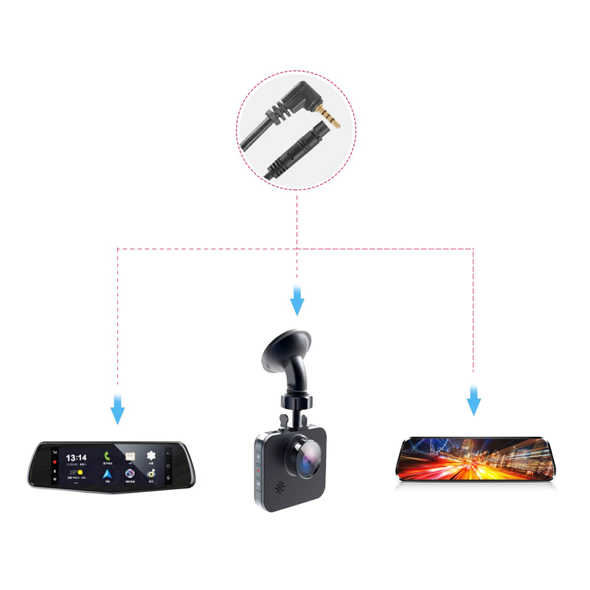 Q: What type of rear cameras is this cable compatible with?A: This 5 pin to 2.5mm male cable is specifically designed for dash cam rearview cameras that use a 5 pin connector.