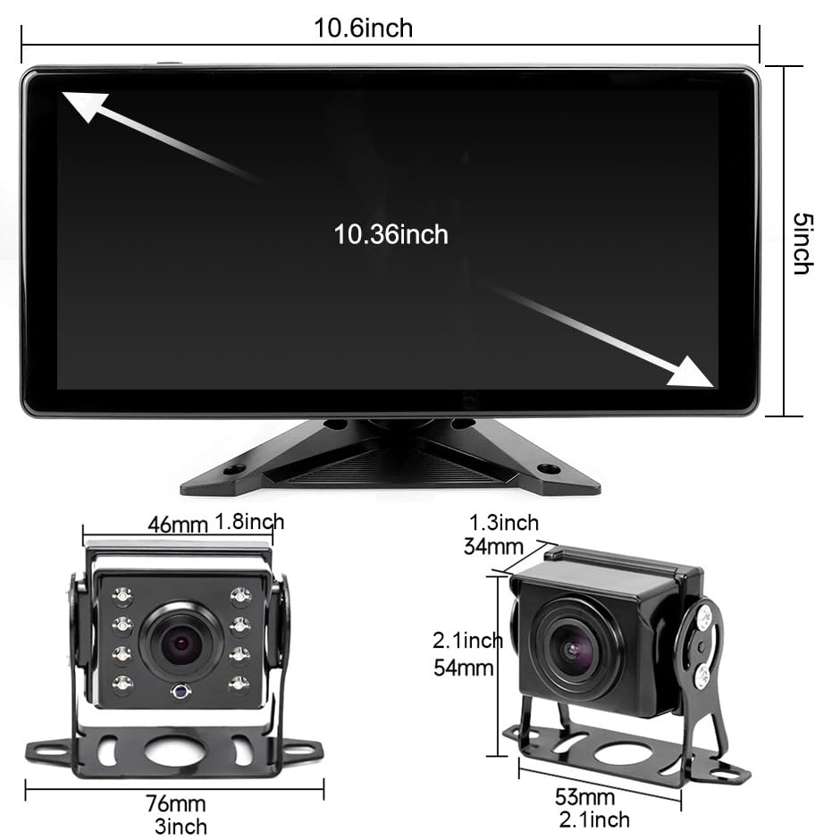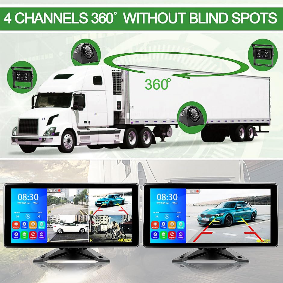 Eversecu10.36 Touch Screen 4K Quad Display Monitor & Car Backup Cameras System & 4Pcs 1080P Backup Ahd Cameras, Mp5 Player, Vehi