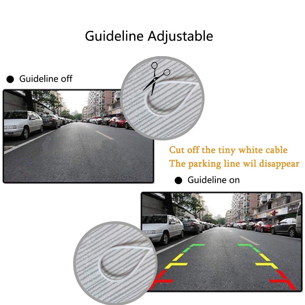 Q: How does the built-in guideline feature work?A: The built-in guideline feature allows for instant distance calculation, providing a visual aid when reversing. You can also toggle the guideline on or off using the mini backup camera's switcher.