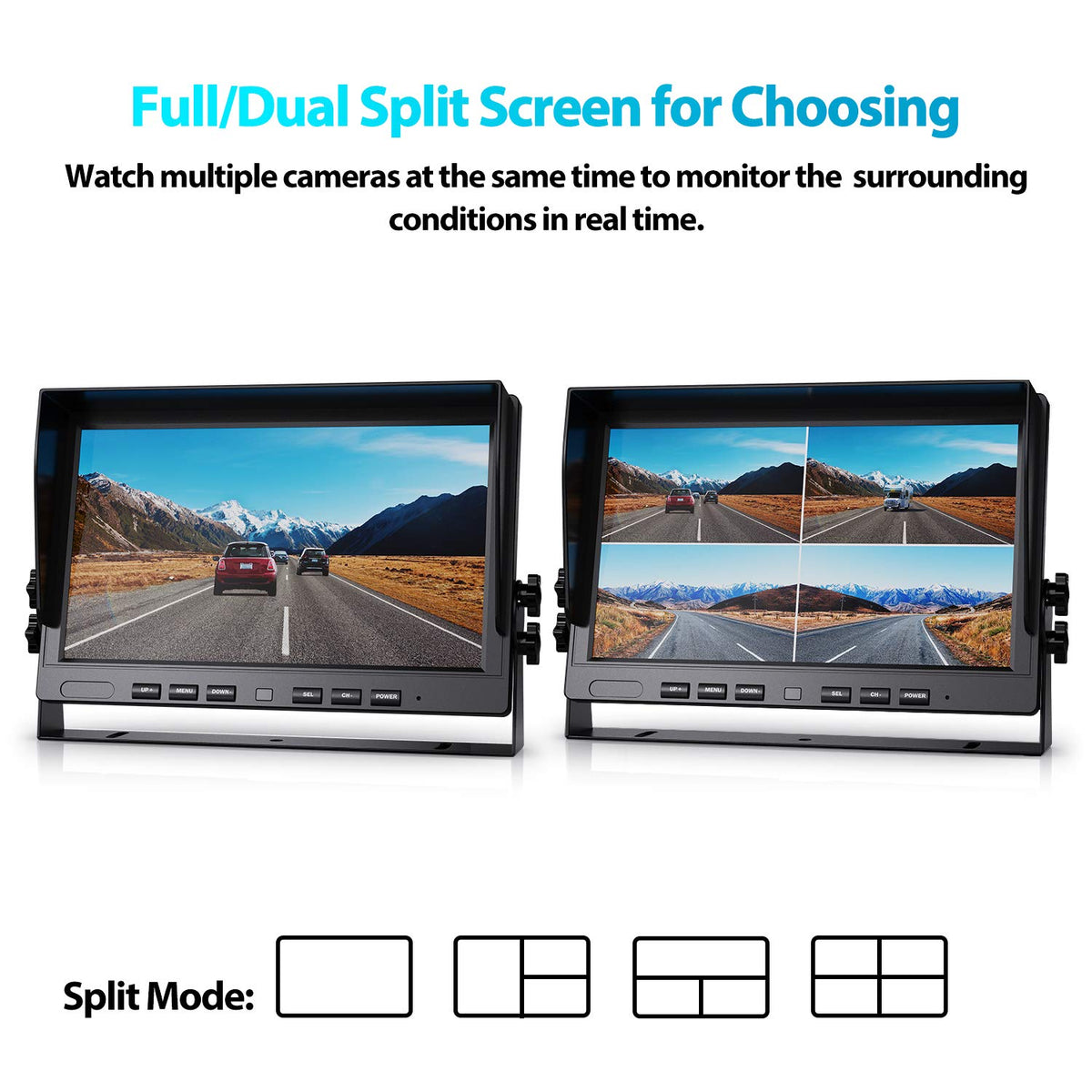 Fookoo ? 10'' 1080P Wired Backup Camera System Kit,10'' Hd Quad Split Screen Monitor With Recording Ip69 Waterproof Rear View Si