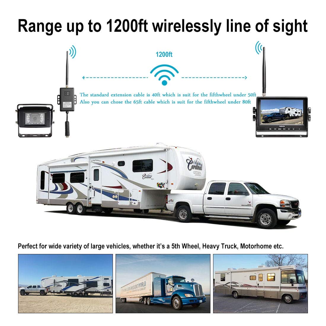 Range Donminator Is Primarily Designed For Long Length Vehicles, Such As Rv, Fifth Wheel, Travel Trailer, Motorhome And Camper, Etc. Integrated Frequency Hopping Technology Avoid Interference. No Signal Dropping Or Freezing At Speeds Up To 110 Mile. Wireless Rear View Monitoring System With External Range Extender, Getting Rid Of Any Obstacle With Enhanced Signal Range Up To 1200Ft Hd Resolution: 1024*3Rgb*600 900Cd/M2 High Brightness Monitor Enable Clear Image Even Under The Sunshine. Ips Pannel Maintain True Image At Any Angle. Video Recording, Max 128G Tf Card Supported.