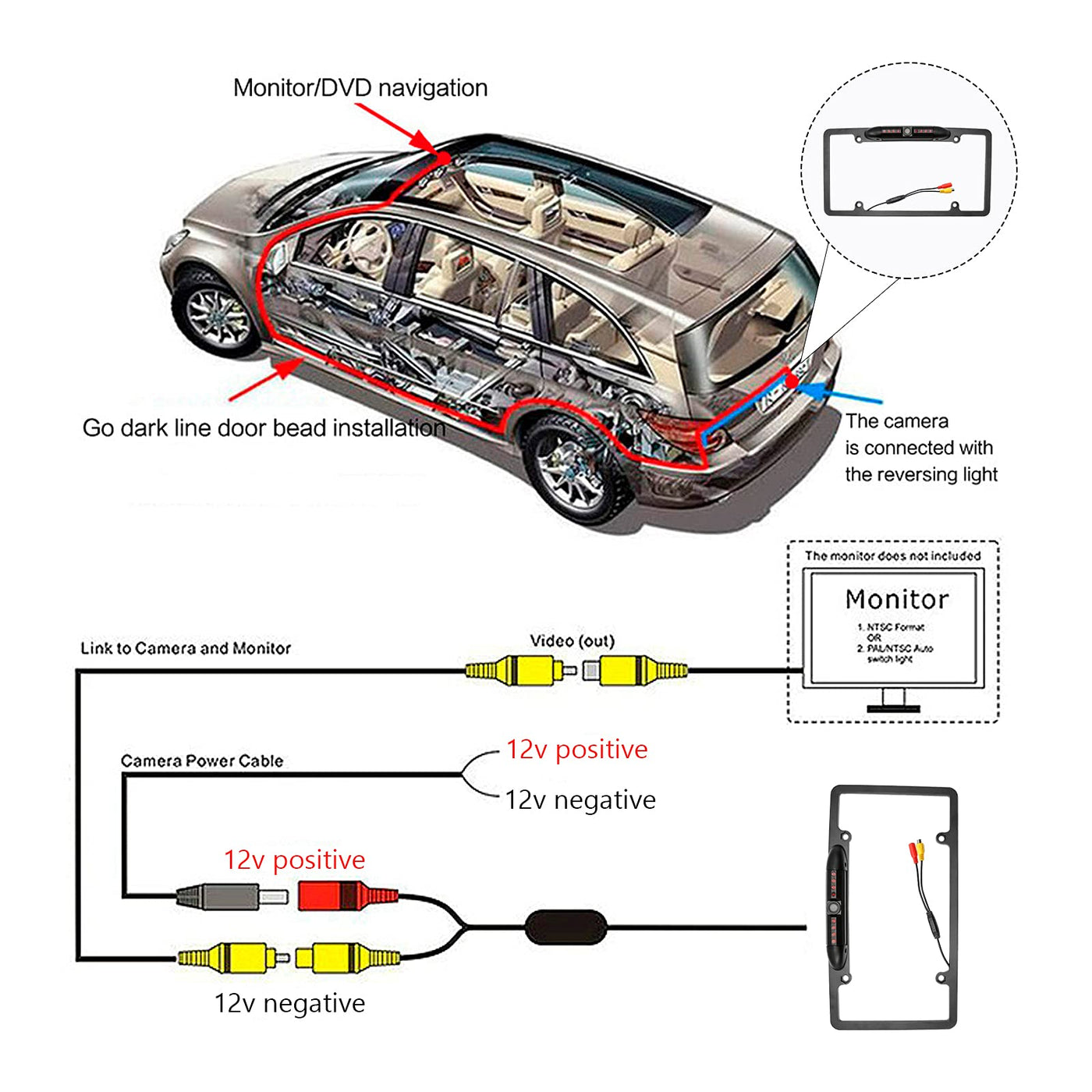Feature:Quality Zinc Metal License Plate Frame Camera With Ip-67 Grade Waterproof And Dustproof, Works Well In Atrocious Weather. 170 Wide Viewing Angle, High Sensitive Color Cmos Image Sensor. Lens Angle Physically 45 Adjustable On The Camera.&Nbsp;Imager, With 8 Infrared Led, Excellent Night Vision Performance, Provides Safety Reversing Both In Day &Amp; Night. Ideal For Most Vehicles That Use A Standard U.S. Or Canada License Plate.