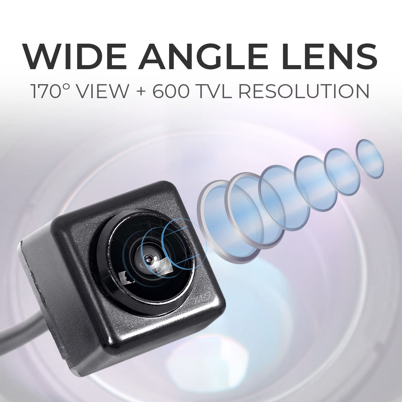 Q: What are the specifications of the backup camera?A: The camera features a ¼” On-Semi CMOS sensor, 600 TV lines resolution, 170-degree wide-angle view, and is IP68 waterproof rated, making it suitable for various weather conditions.