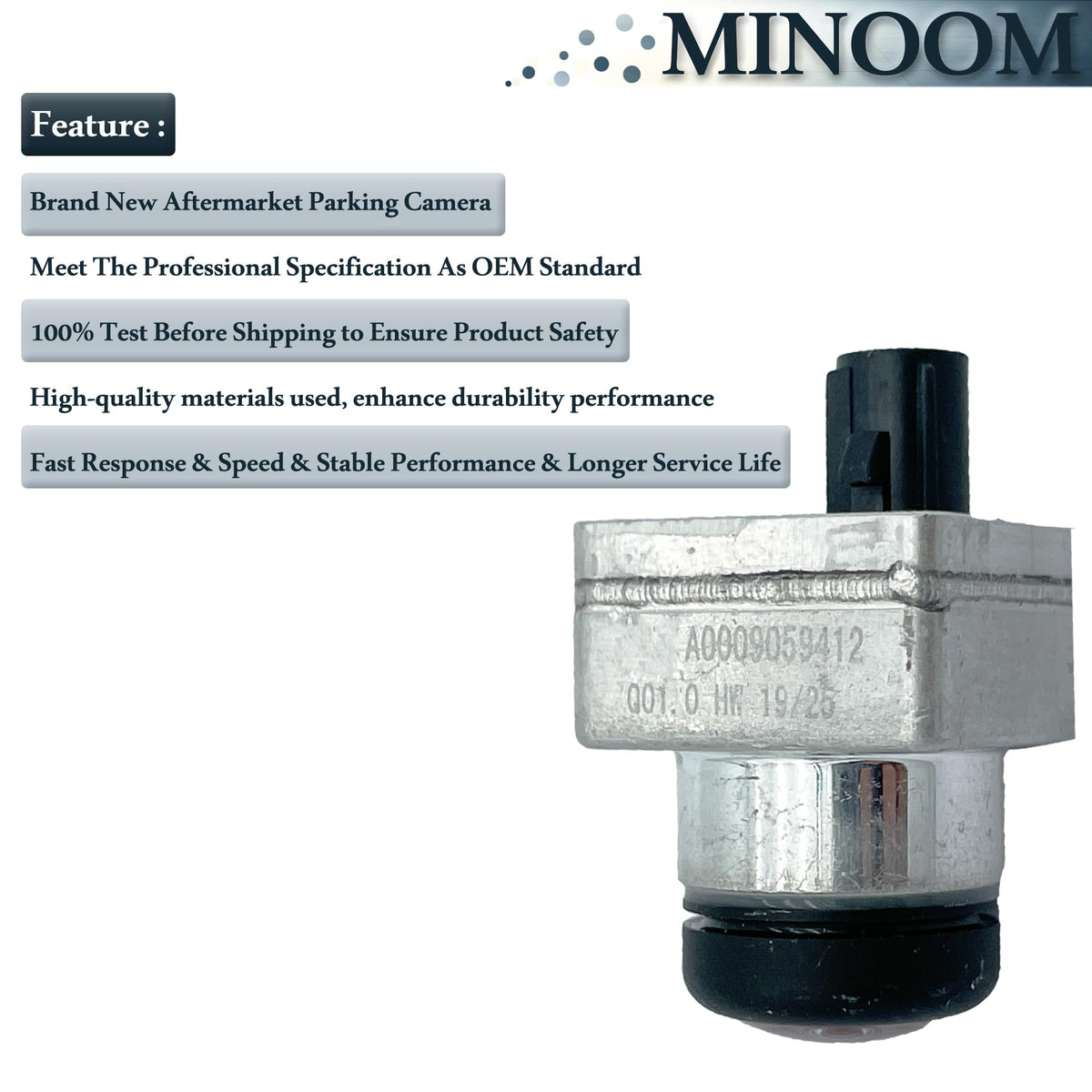 Q: What features does the MINOOM A0009059412 Backup Parking Camera offer?A: This backup parking camera features a high-quality, wide-angle lens for clear resolution, additional electronics protection for reliability in harsh conditions, and is manufactured to stringent quality standards to ensure durability.
