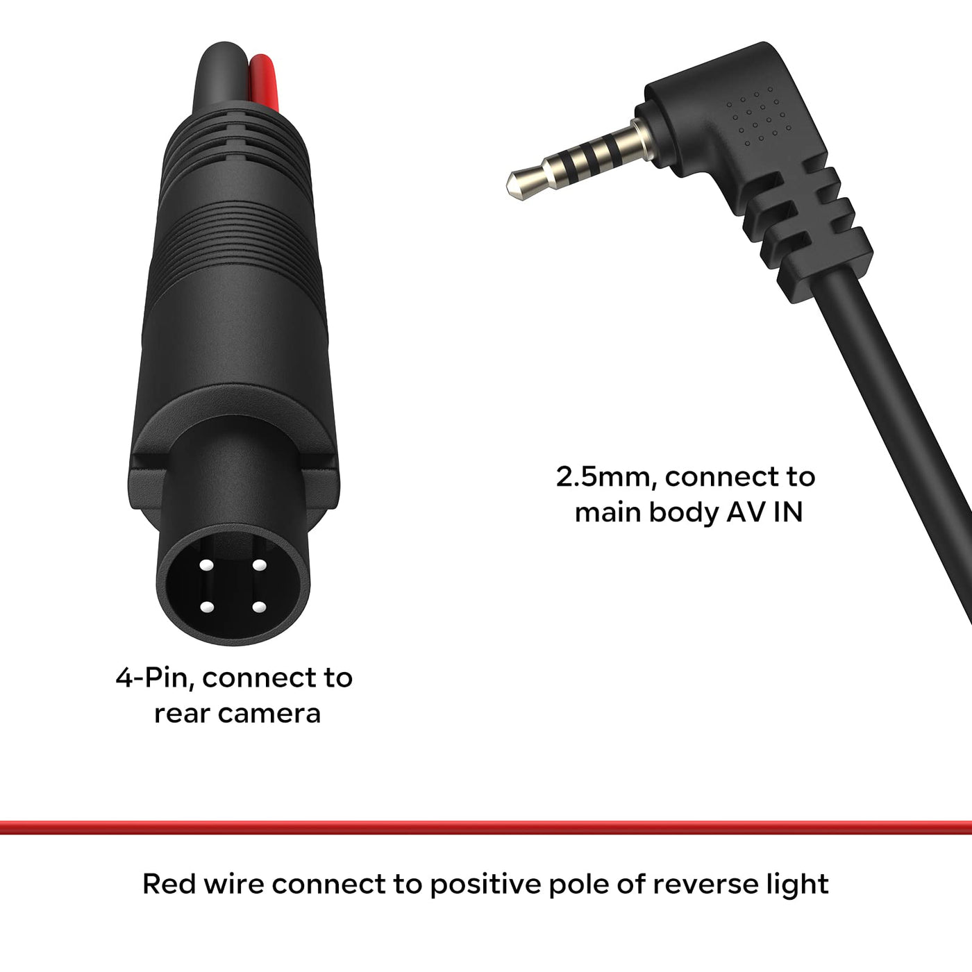 Q: How long is the pelsee rear camera cable?A: The pelsee rear camera cable measures 33 feet in length, providing ample reach for connecting your rearview backup camera to your dash cam.