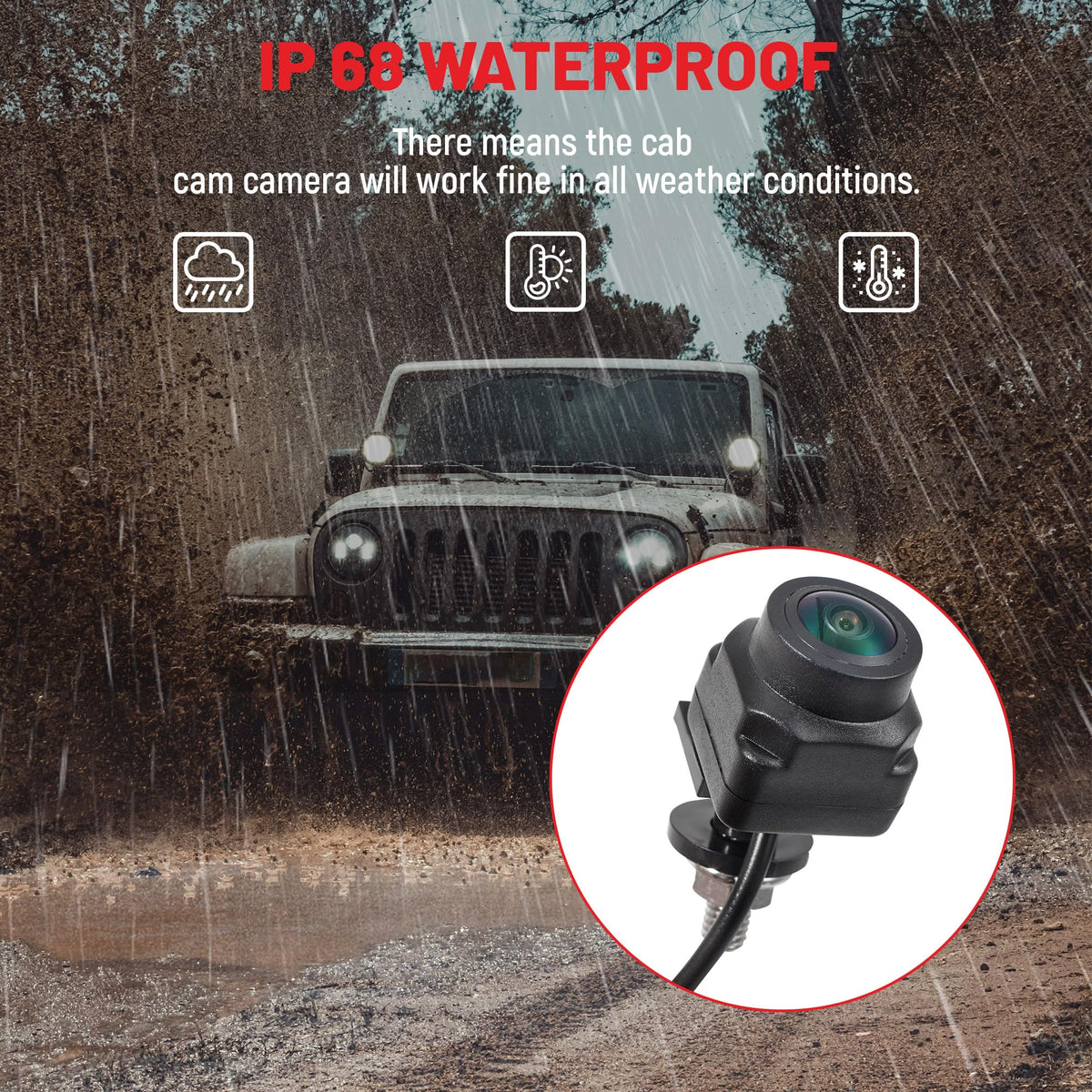 Q: Is the RED WOLF Front View Camera waterproof?A: Yes, this camera has an IP 68 waterproof rating, ensuring it can withstand exposure to water and harsh weather conditions while maintaining functionality.