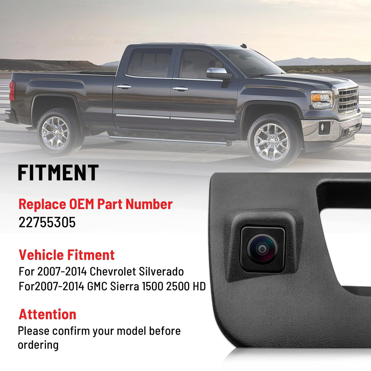 Q: Is the RED WOLF Tailgate Handle Reverse Backup Camera compatible with my 2007-2014 Chevrolet Silverado?A: Yes, the RED WOLF Tailgate Handle Reverse Backup Camera is specifically designed for 2007-2014 Chevrolet Silverado and GMC Sierra models, making it an ideal replacement for your truck's tailgate handle.