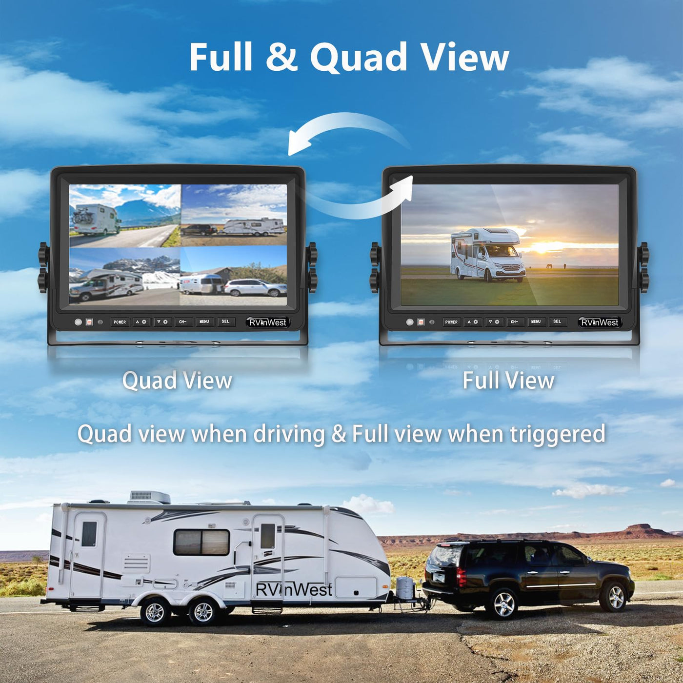 Rvinwest Backup Camera System With 9'' 1080P Monitor Wired For Rv Car Truck Trailer Camper, 4 Split Screen Quad View Hd Dvr Reco