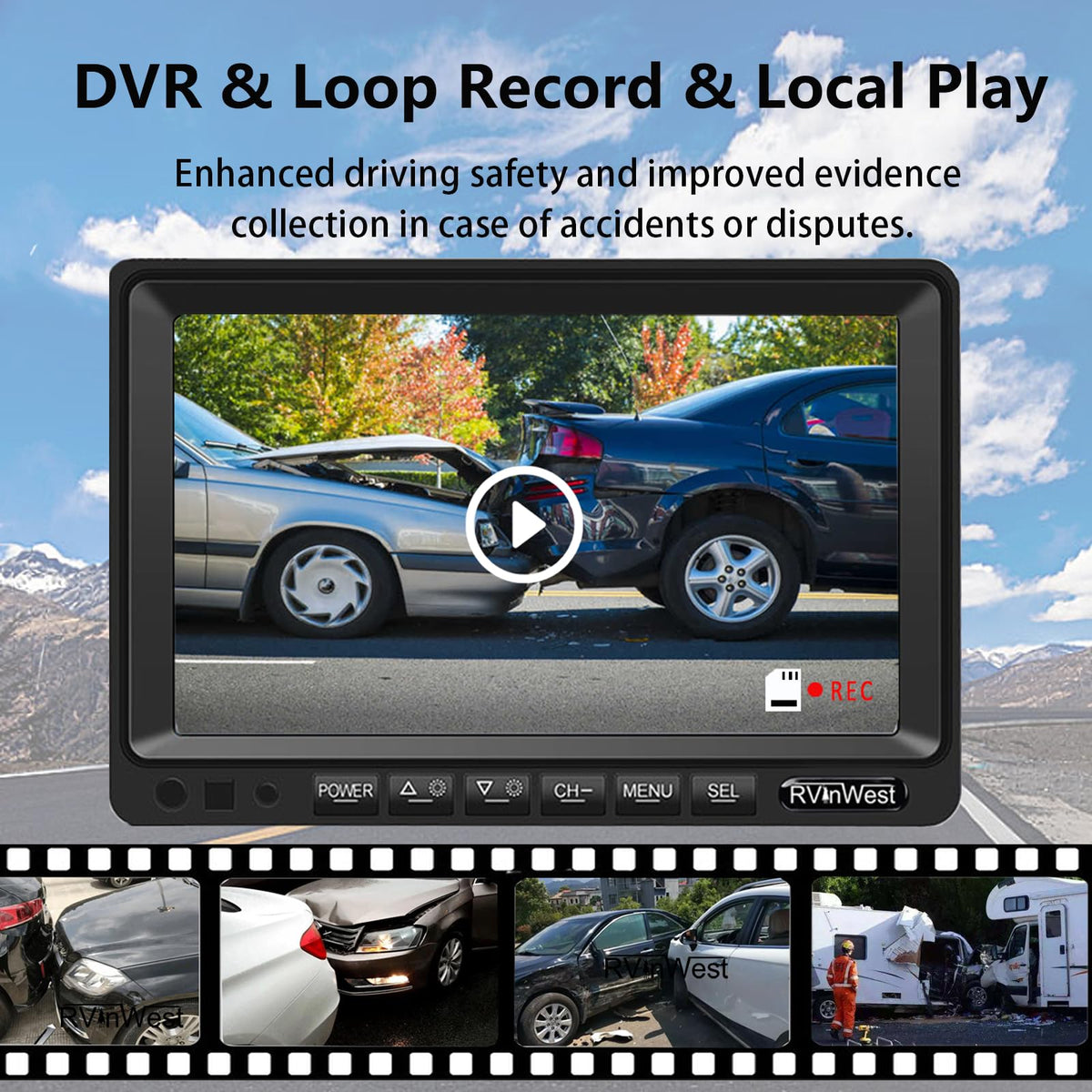 Q: Does the backup camera system support recording functionality?A: Yes, the RVInWest Backup Camera System comes with a built-in DVR that allows you to record video from up to four cameras simultaneously. It supports loop recording, which means older footage will be overwritten automatically, ensuring you always have the latest recordings available.