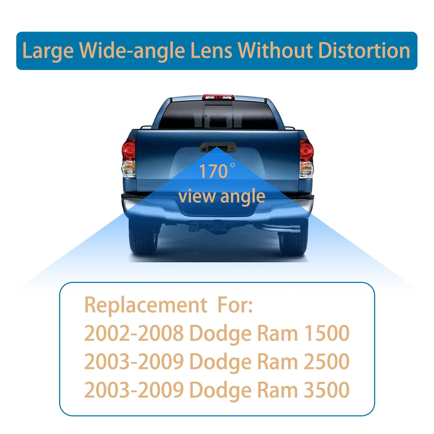 Tailgate Handle W/Camera, Compatible With 2002-2009 Dodge Ram 1500 2500 3500, 170 Viewing Angle, Backup Camera Kit, Rear View Ca
