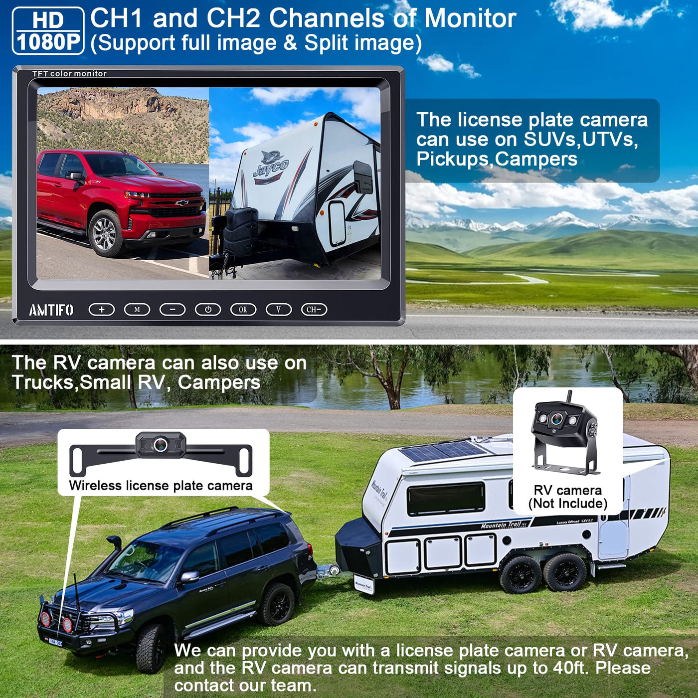 Q: Is the monitor suitable for use with other cameras?A: Absolutely! The upgraded 7-inch monitor features two wireless video inputs, allowing you to connect additional cameras such as a wireless license plate camera for trucks or even a front camera for added safety.